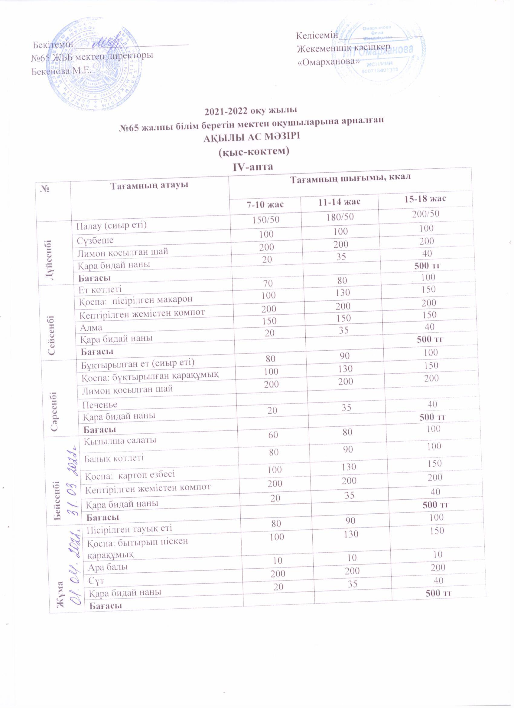 Меню бесплатное и платное с 31.03. по 01.04.2022г