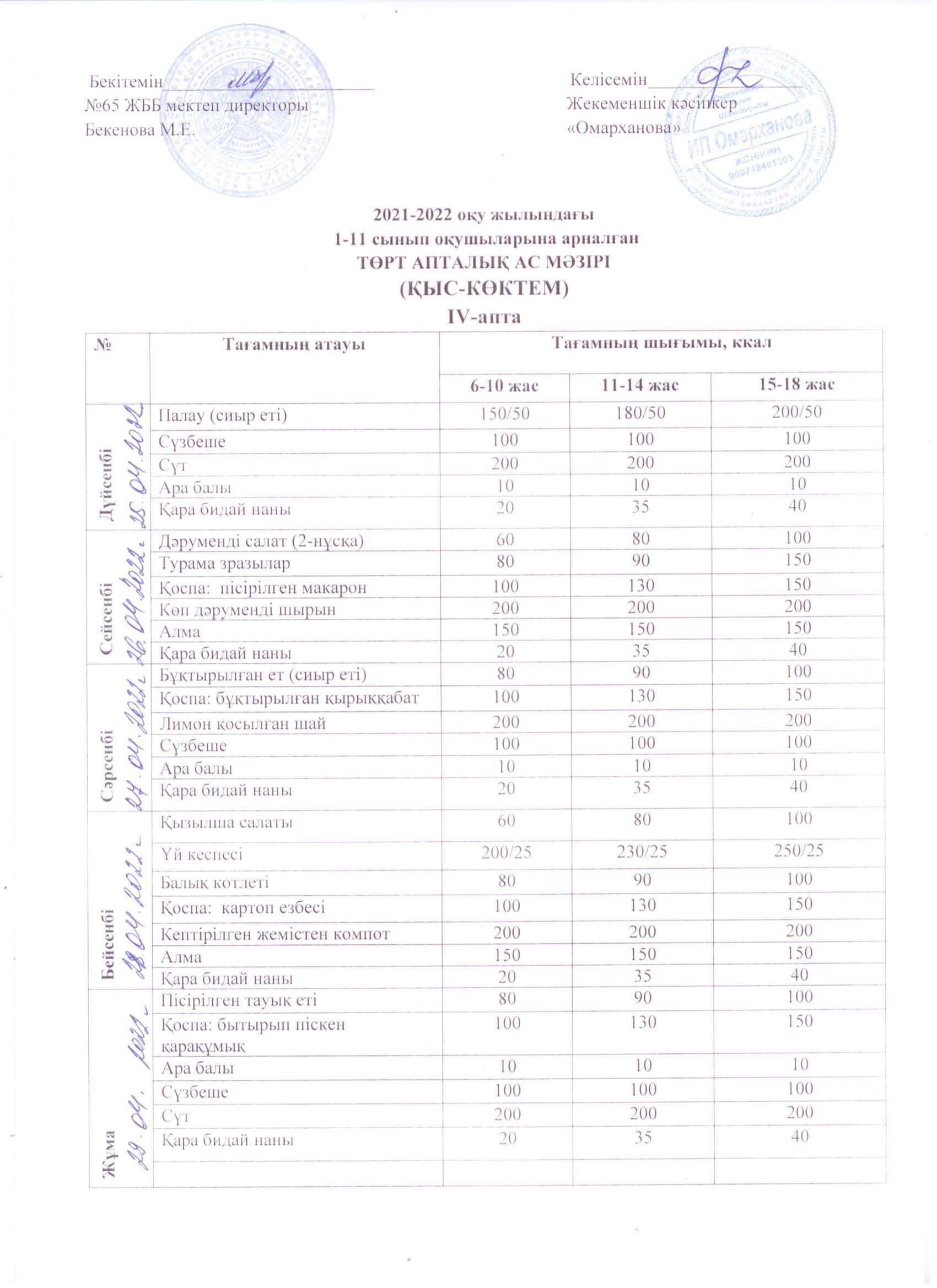 Меню бесплатное и платное с 18.04. по 22.04.2022г