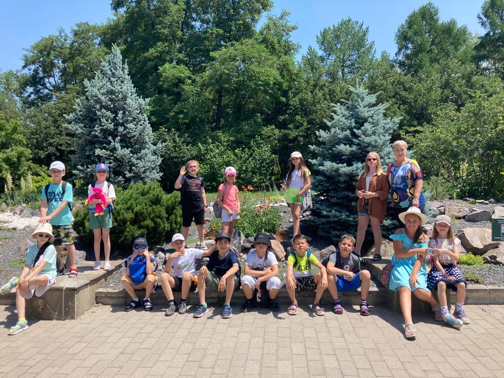 Посещение Ботанического сада детьми пришкольного лагеря "Солнышко". Главный Ботанический сад — научно-исследовательский институт площадью 103,6 га, который был заложен в 1932 году. В алматинском дендрарии собрана уникальная многотысячная коллекция растений Казахстана, России, Крыма и Кавказа, Северной Америки и Восточной Азии. Ботанический сад является особо охраняемой природной территорией, предназначенной для исследования, защиты и