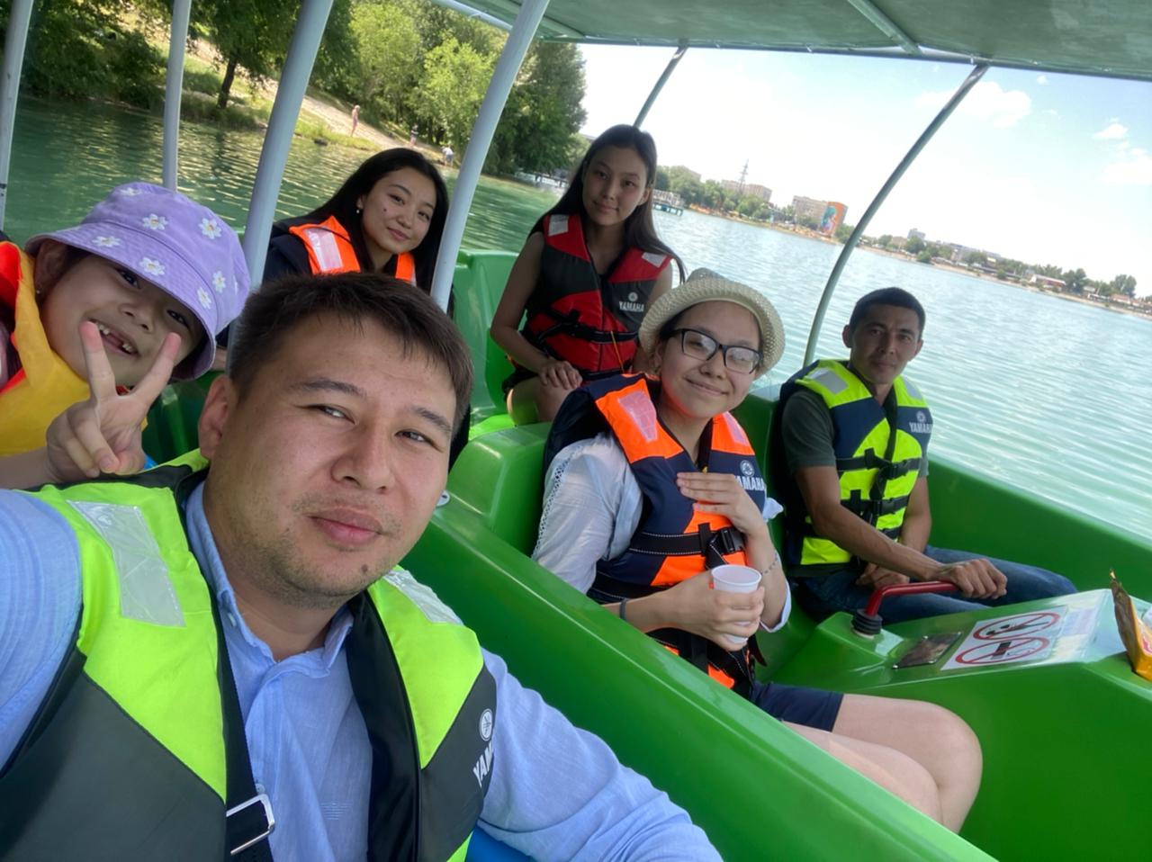 22 маусым 2022 0 1 2 3 4 5 Жазғы лагерь / Летний лагерь Сегодня ребята из нашего пришкольного лагеря «Солнышко» были на озере Сайран, катались на катамаранах, поиграли в волейбол и организовали шикарный пикник, тем самым очень хорошо провели время