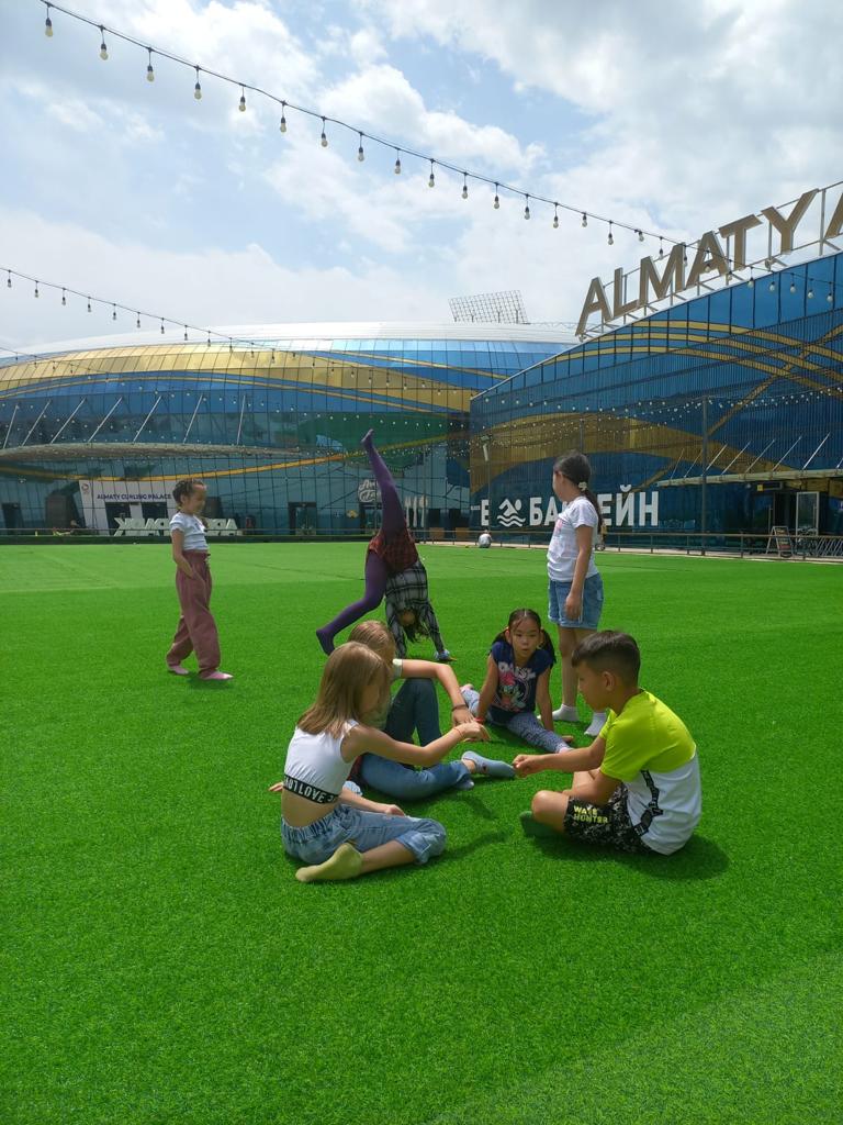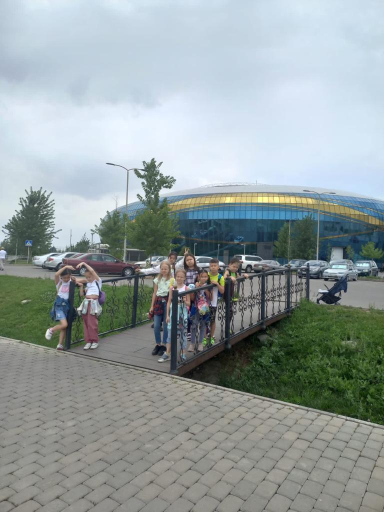 Также ребята гуляли возле Большого спортивного комплекса Almaty Arena. Учителя провели беседу о том, что в данном комплексе работают различные спортивные секции, тренажёрные залы, бассейны, также в этом комплекте проводят концерты, спортивные соревнования.