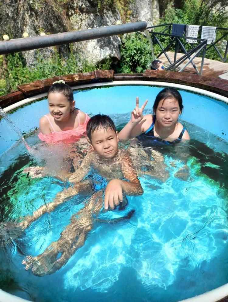 Для посетителей установлено две бочки с горячей и холодной водой, душ, а также спортивные площадки. И вот заветное желание детей, покупаться.