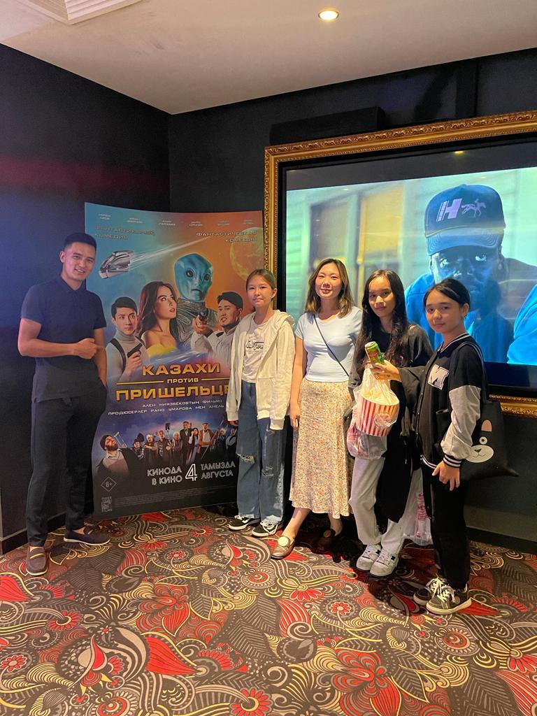 Бүгін “Солнышко” лагерінің оқушыларымен Москва ойын сауық орталығындағы кинотеатрға бардық. Отандық киноиндустриямыздың жаңа туындысы “Казахи против пришельцев” фильмін тамашаладық.