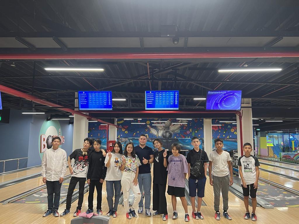 Бүгін «Солнышко» мектеп лагерінің балалары боулинг ойнады.