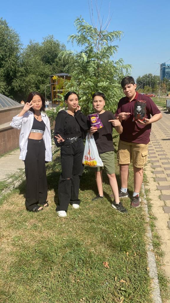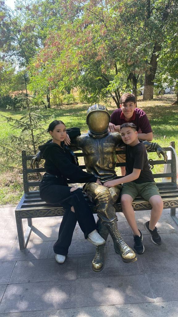Сегодня дети пришкольного лагеря «Солнышко» прогуливались по живописной зелёной аллее, построенной в советские годы вдоль проспекта Гагарина. Местом для селфи послужила шутливая бронзовая инсталляция космонавта Ю. Гагарина. Ребята узнали, что это дань прошлому, так как именно из Байконура советский космонавт совершил всем известный полёт в космос и что авторами арт-объекта были молодые студенты.