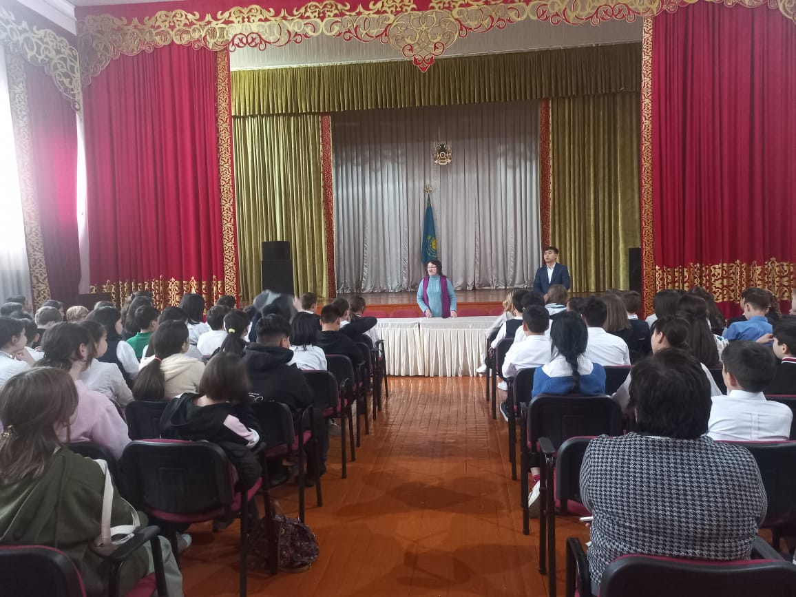 2023 жылдың 18 сәуір күні мектебіміздің 6-7 сыныптар арасында мектеп директоры Бекенова М.Е. , директордың тәрбие ісі бойынша орынбасарлары Рахматулла Н.А. , Илиясова Р.А. және мектеп инспекторы Нургалиева А.М. қатысуымен түсіндіру жұмыстары жүргізілді./18 апреля 2023 года с участием директора нашей школы Бекеновой М.Е. , заместителя директора по воспитательной работе Рахматулла Н.А. , Илиясовой Р.А. и школьного инспектора Нургалиевой А.М. велась разъяснительная работа среди 6-7 классов.