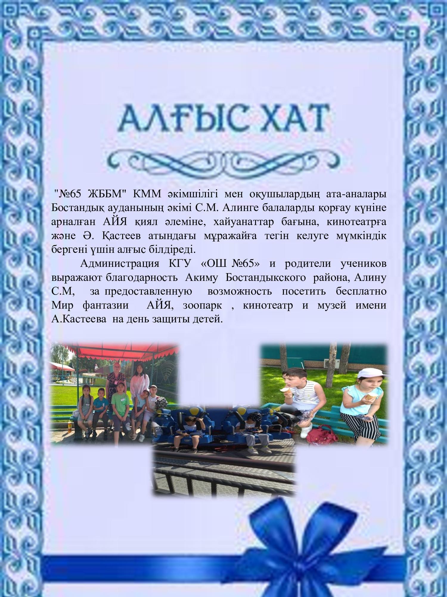 КГУ «Школа-гимназия №65» Управления образования г.Алматы
