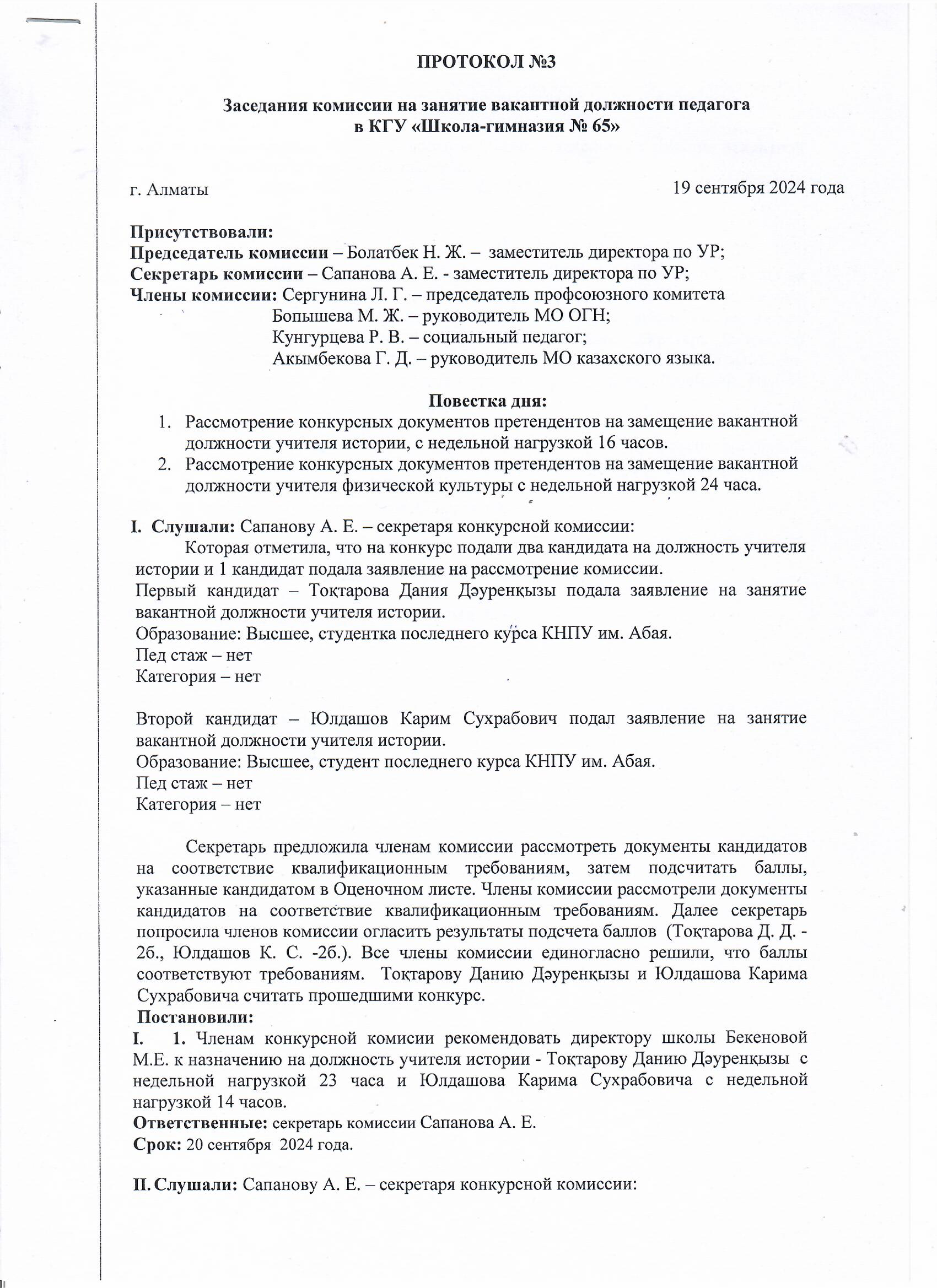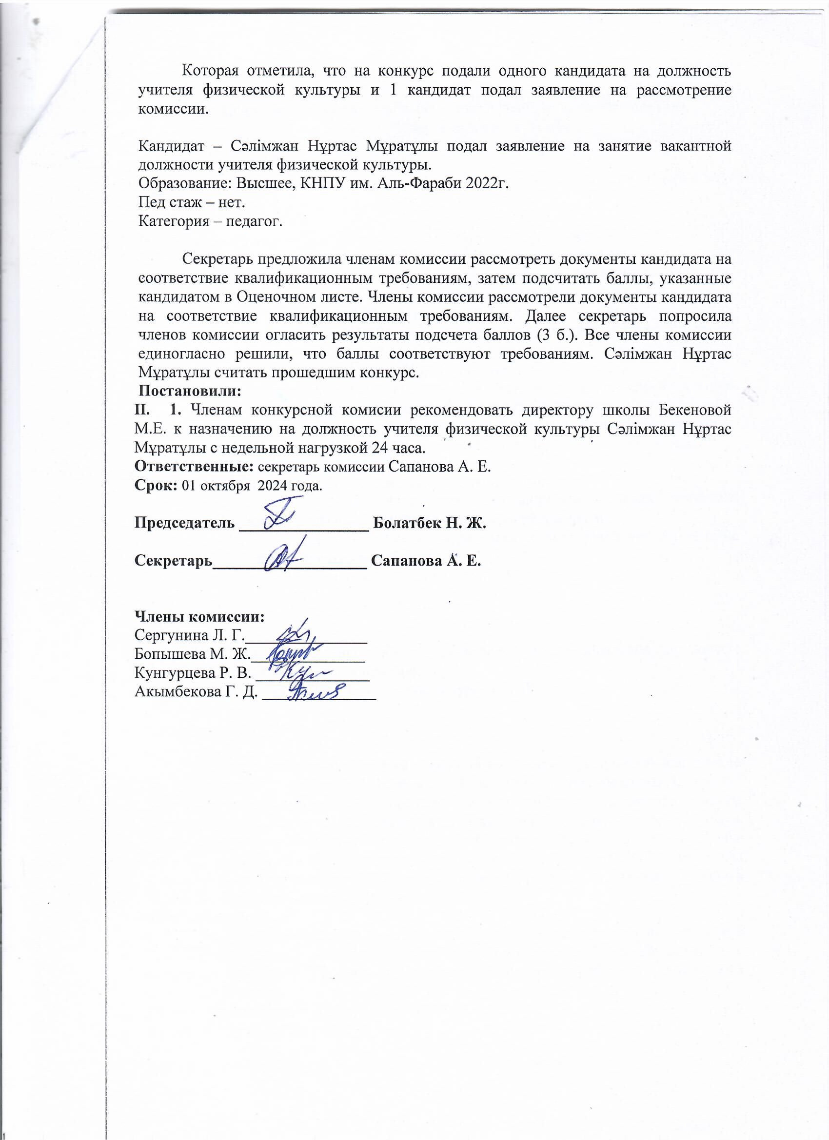 19 қыркүйек 2024 0 1 2 3 4 5 Мұғалімнің бос лауазымына орналасу жөніндегі комиссия отырысының қорытындысы / Итоги заседания комиссии на занятие вакантной должности педагога