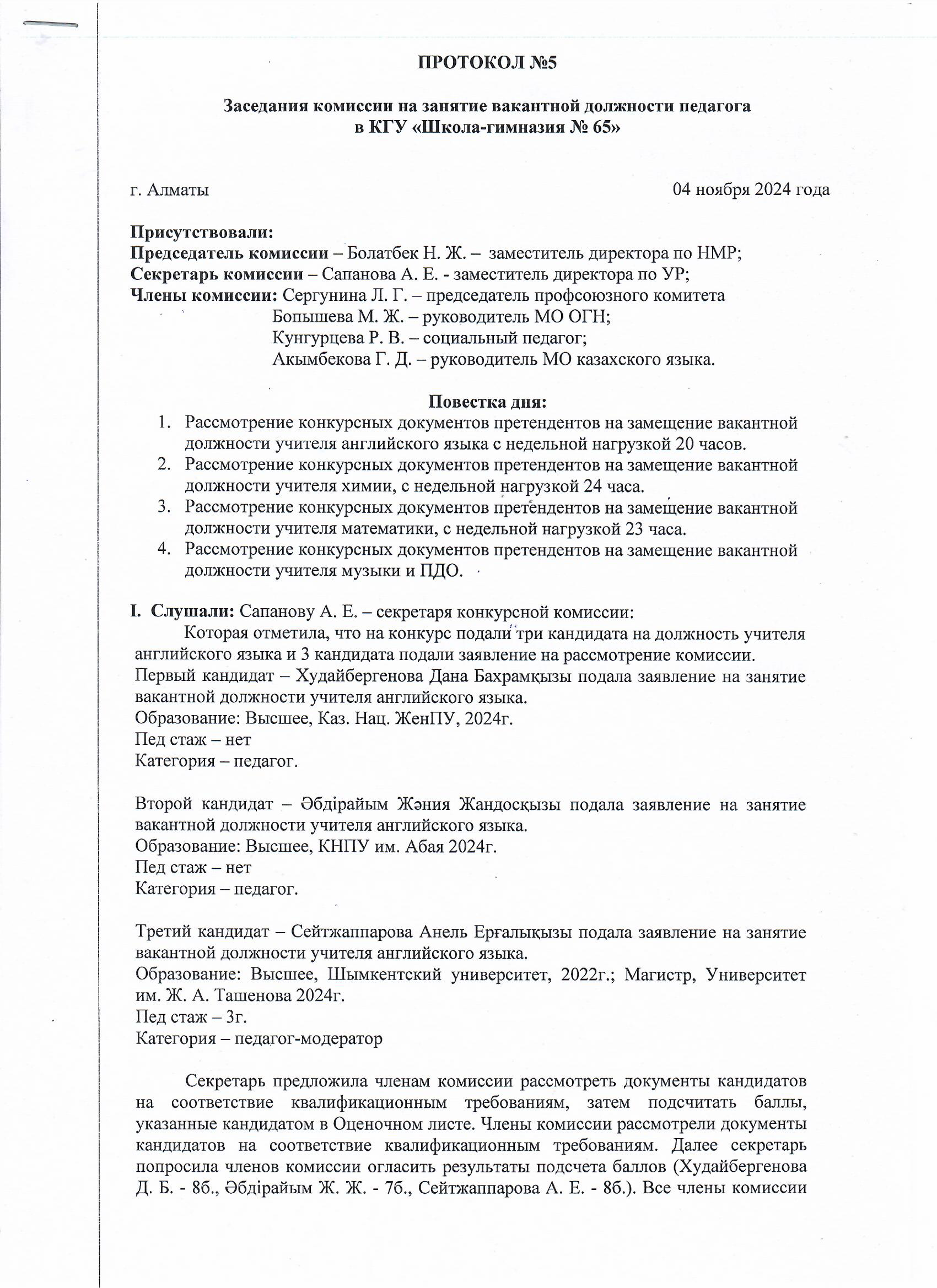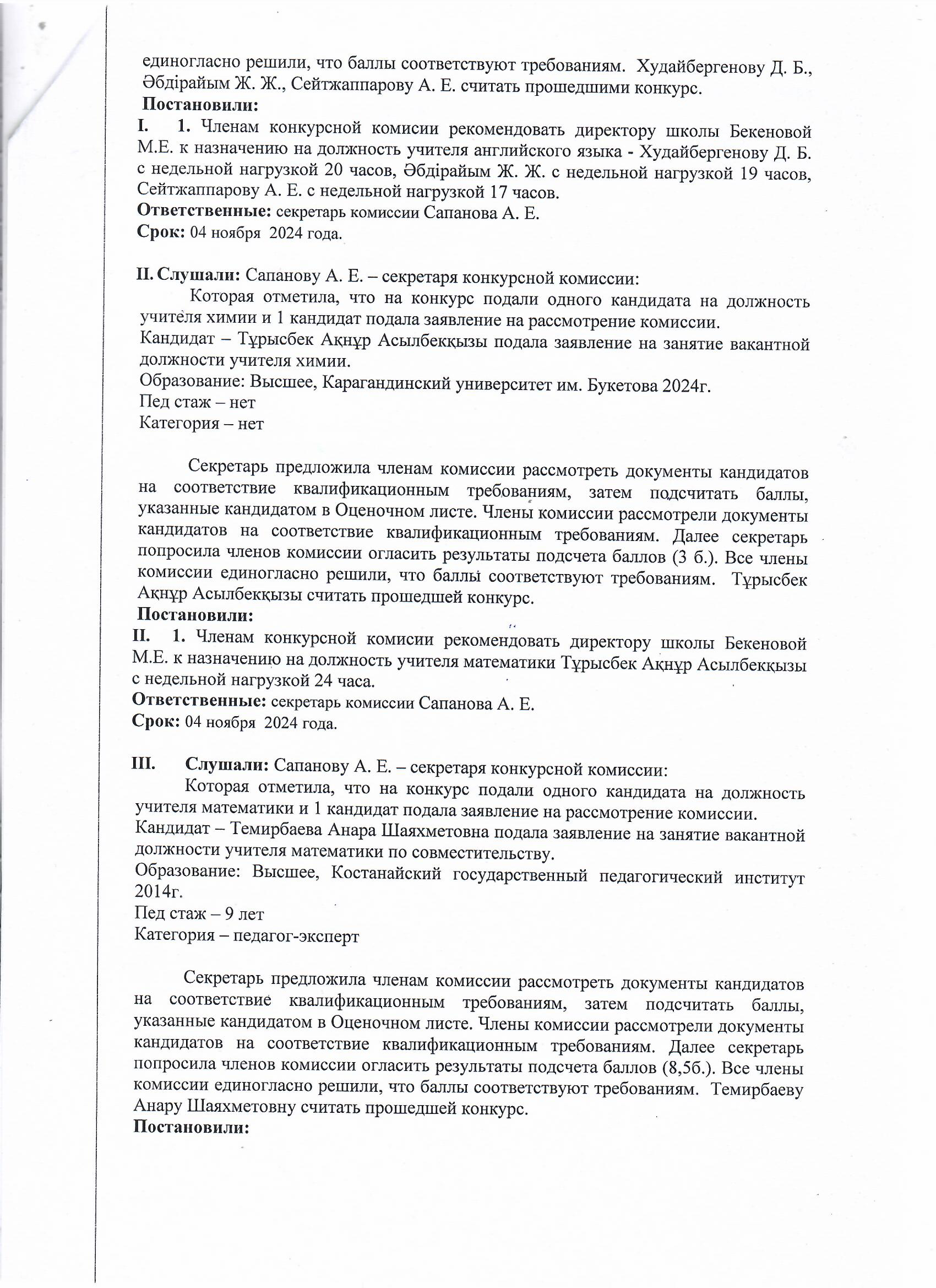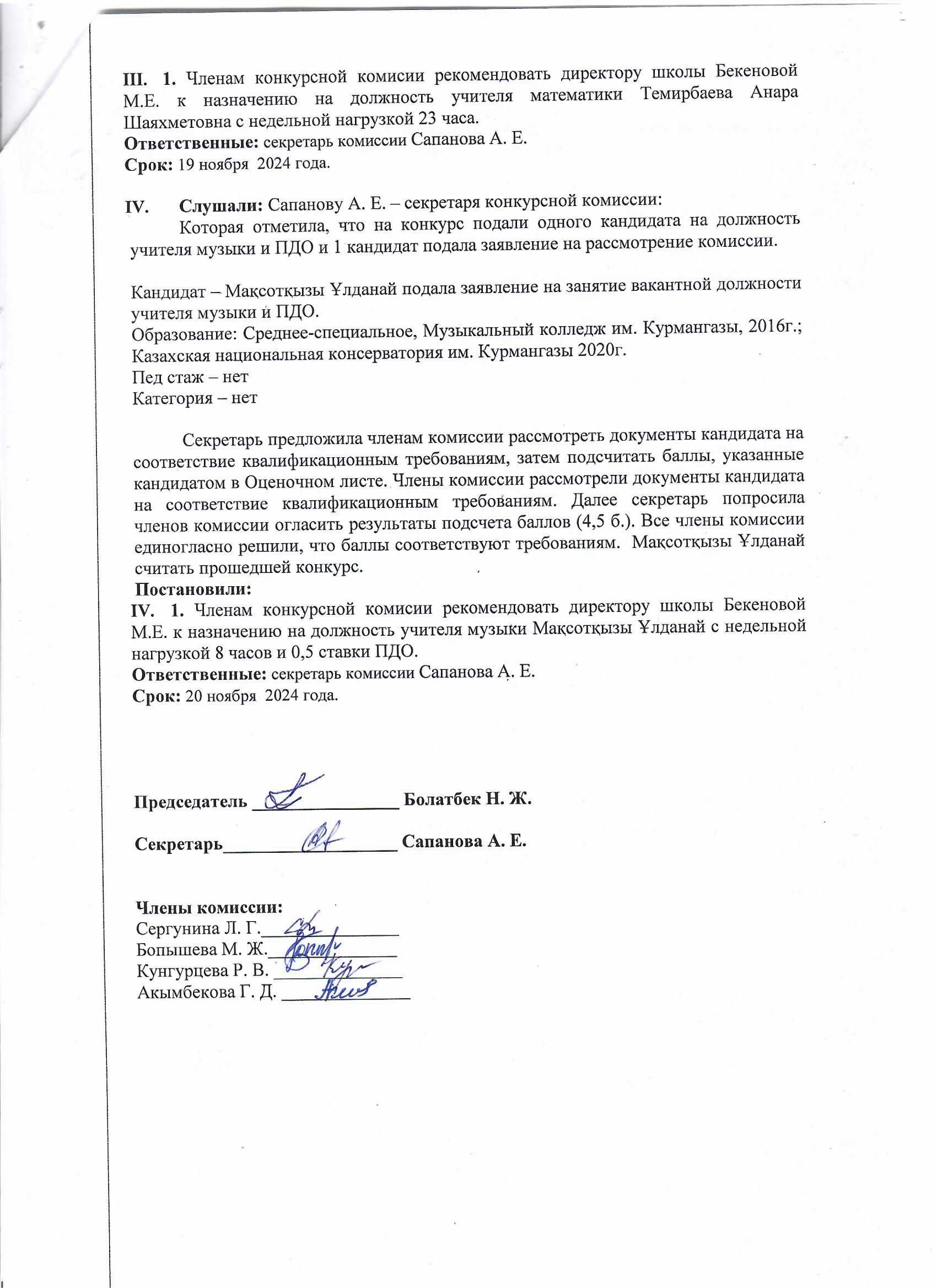 04 қараша 2024 0 1 2 3 4 5 Мұғалімнің бос лауазымына орналасу жөніндегі комиссия отырысының қорытындысы / Итоги заседания комиссии на занятие вакантной должности педагога