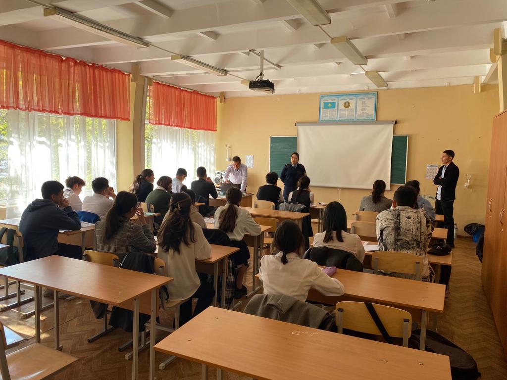 Мектебімізде қазан айының 11-і күні құқықбұзушылықтың алдын алу үшін 5-11 сыныптар арасында мектебіміздің инспекторы Нургалиева Айгерим Маратовнаның қатысуымен түсіндіру жұмыстары жүргізілді. / В нашей школе 11 октября в целях предупреждения правонарушений были проведены воспитательные мероприятия для 5-11 классов с участием нашего школьного инспектора Нургалиевой Айгерим Маратовны.