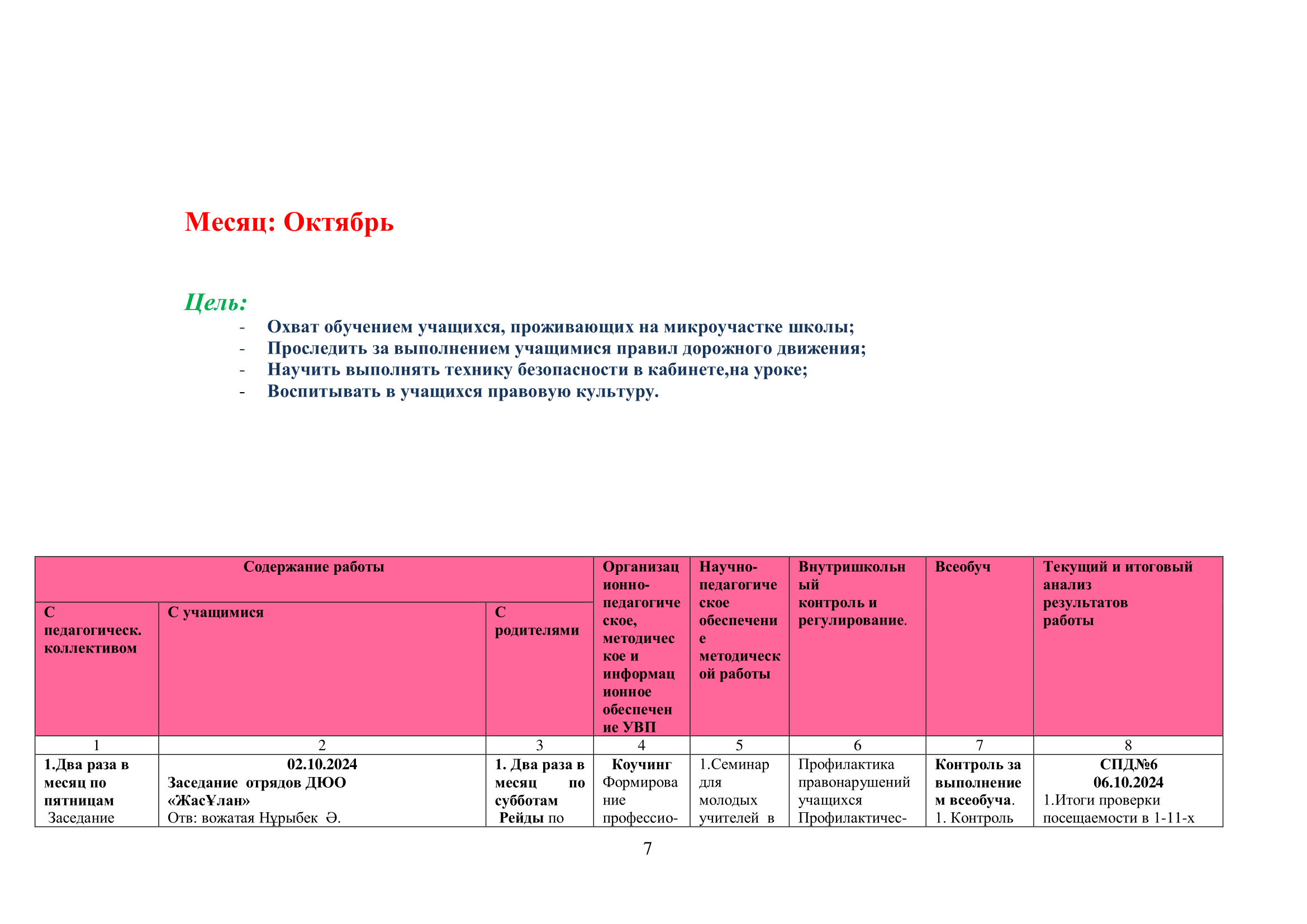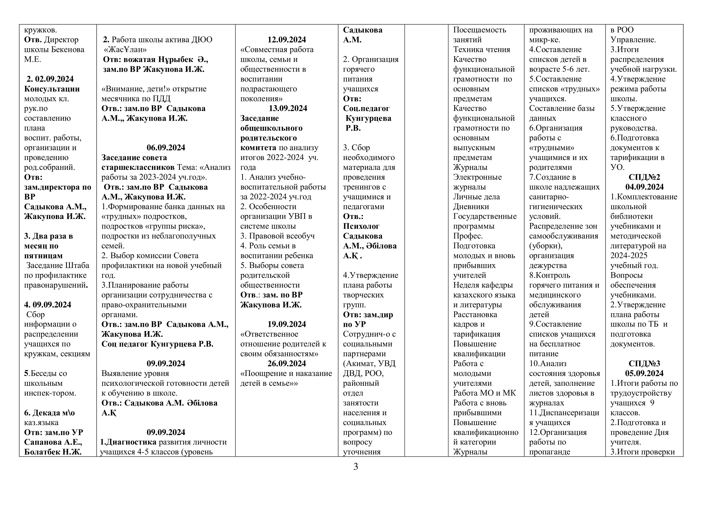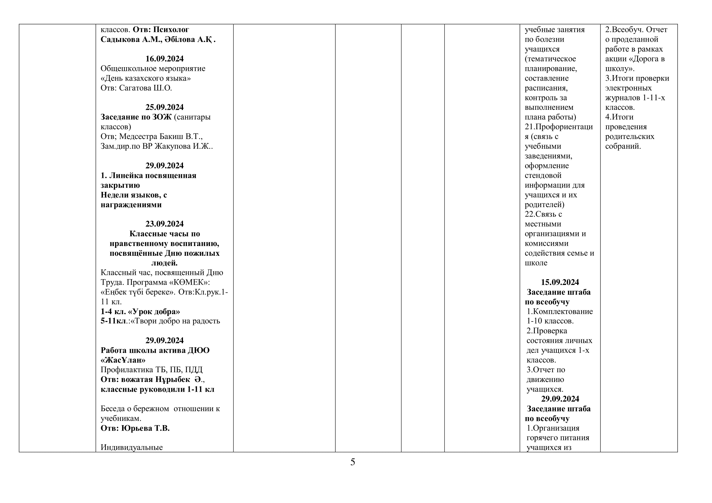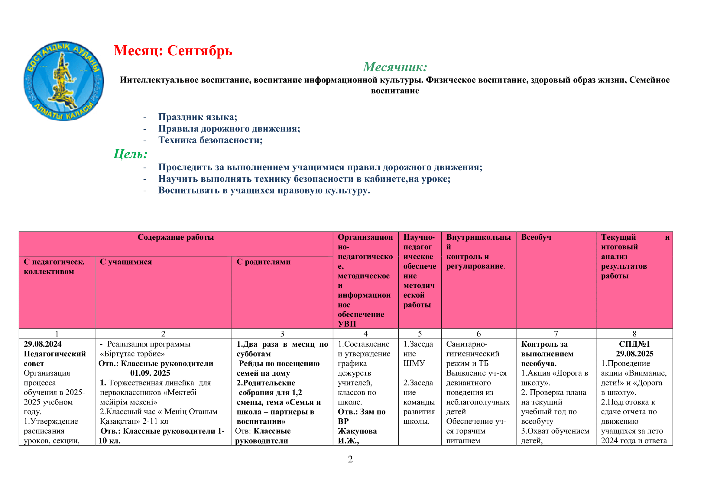 02 қыркүйек 2024 0 1 2 3 4 5 2024-2025 оқу жылына арналған оқу-тәрбие жұмысының жоспары/ План учебно-воспитательной работы на 2024-2025 учебный год