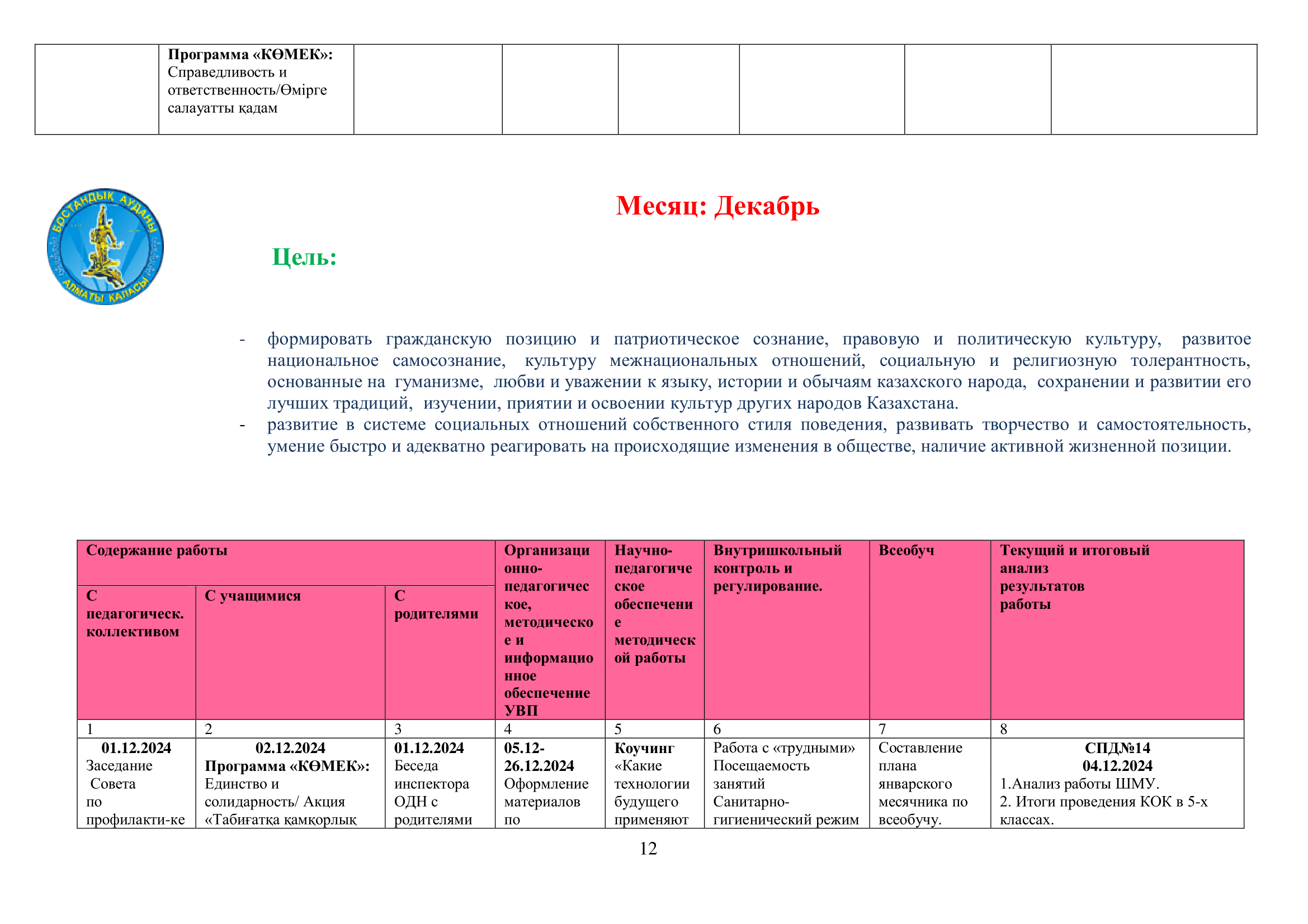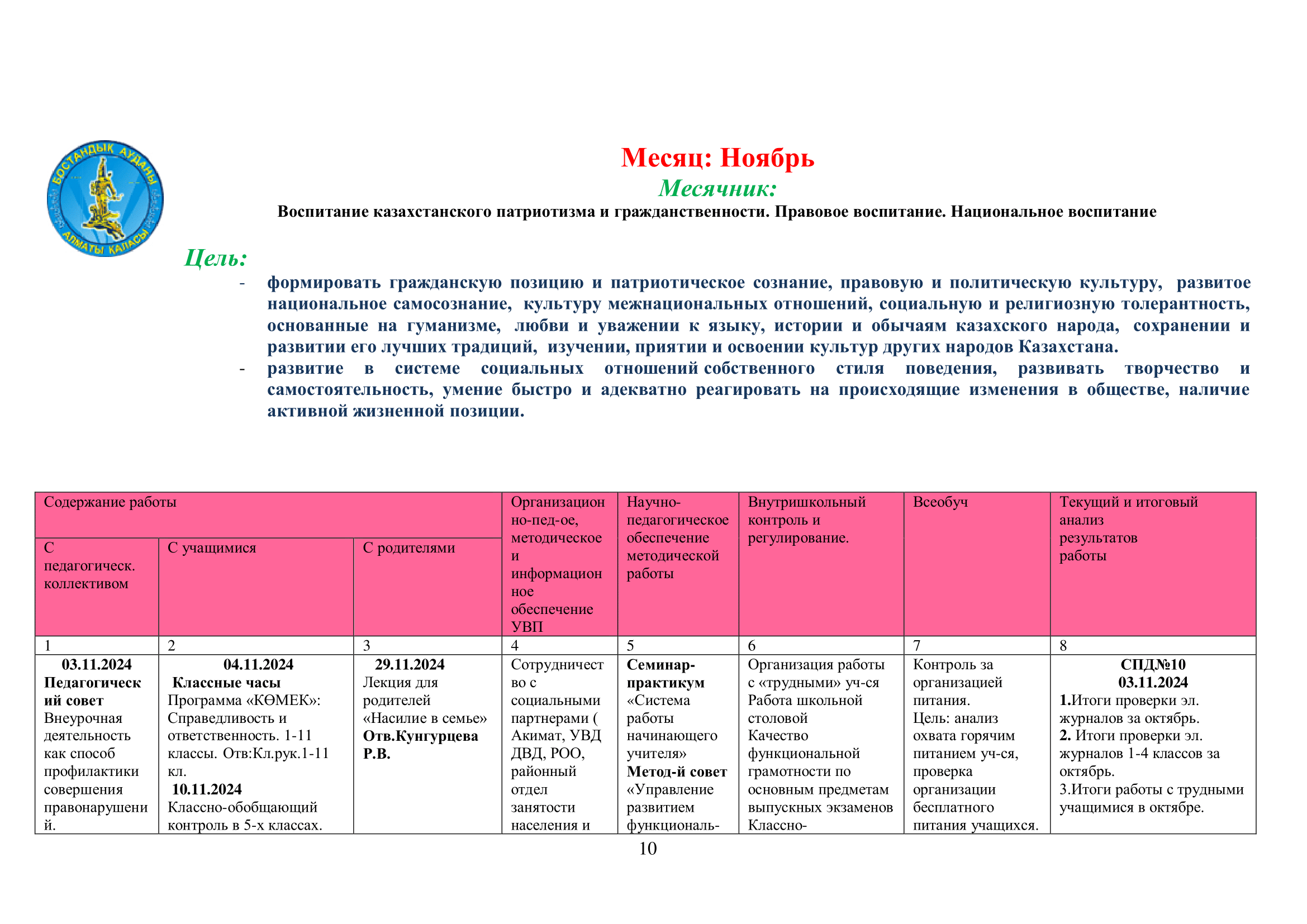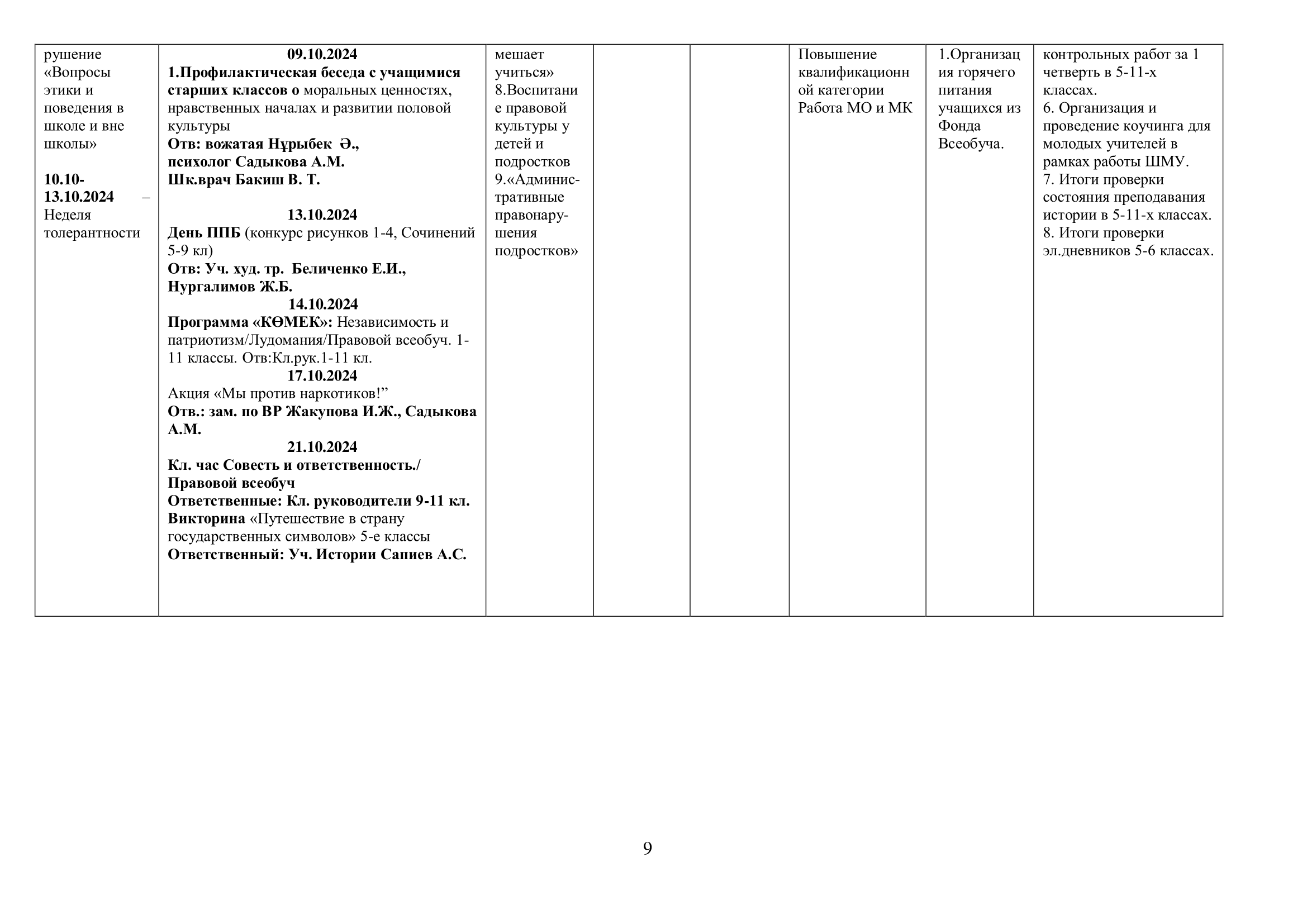 02 қыркүйек 2024 0 1 2 3 4 5 2024-2025 оқу жылына арналған оқу-тәрбие жұмысының жоспары/ План учебно-воспитательной работы на 2024-2025 учебный год