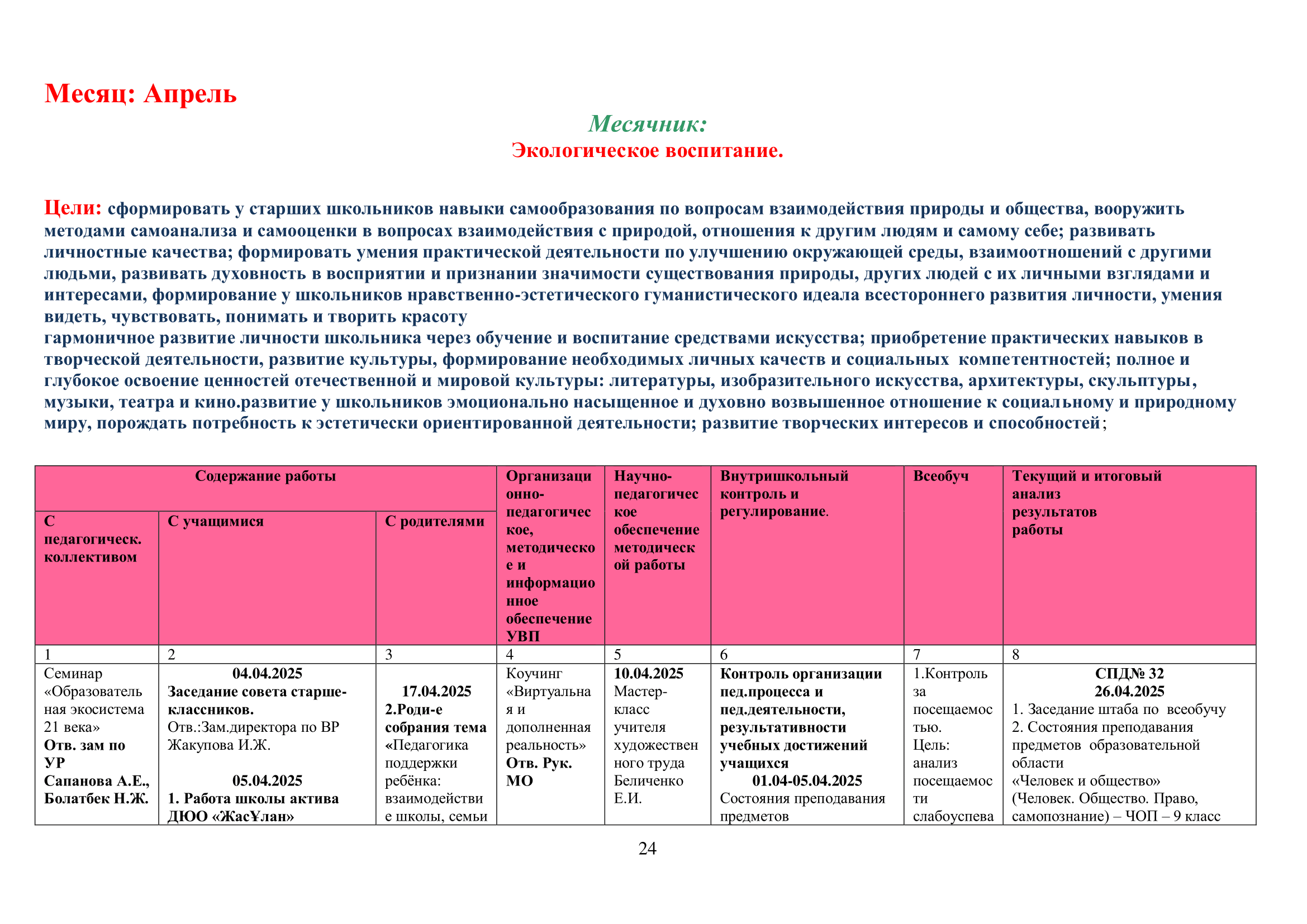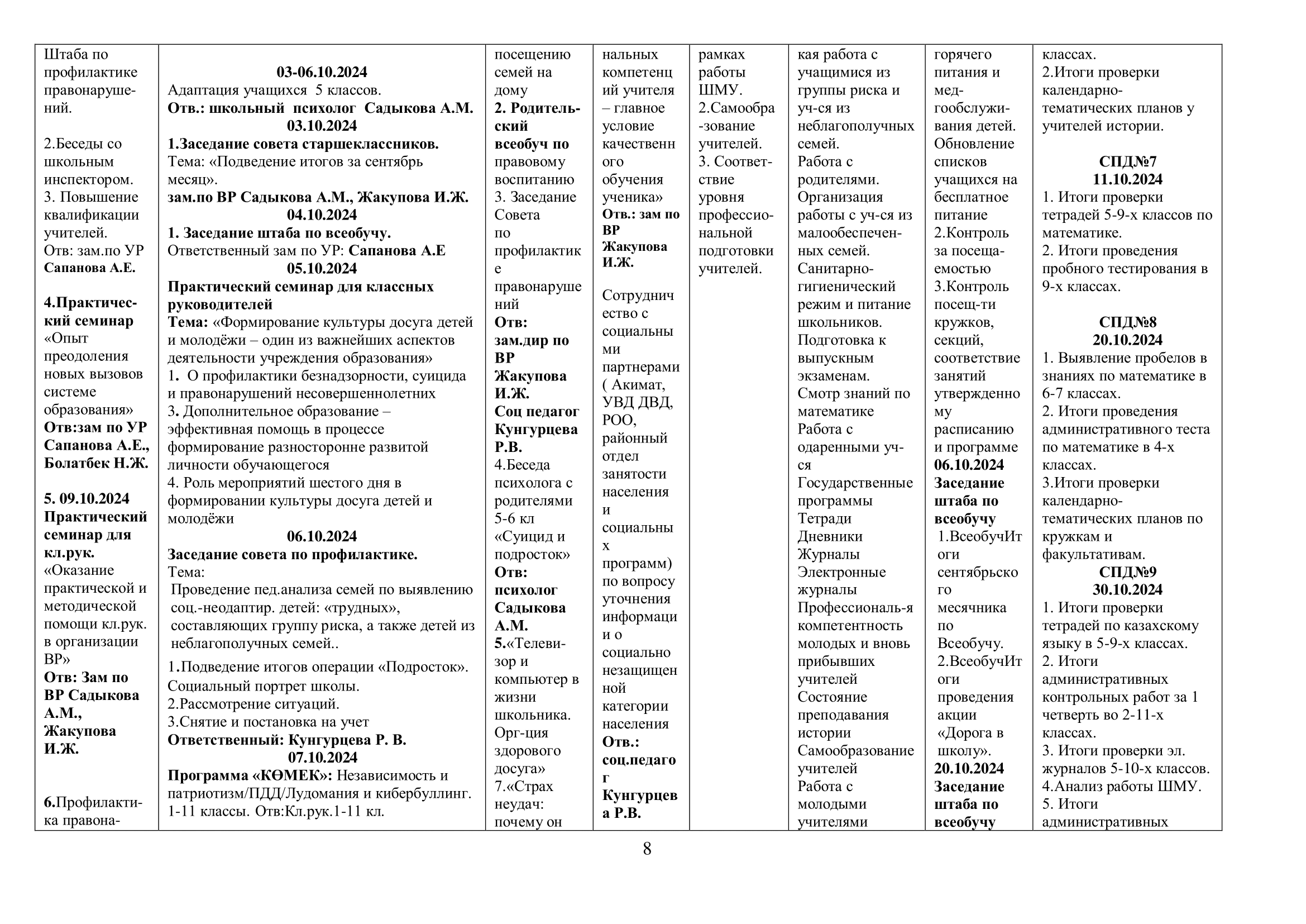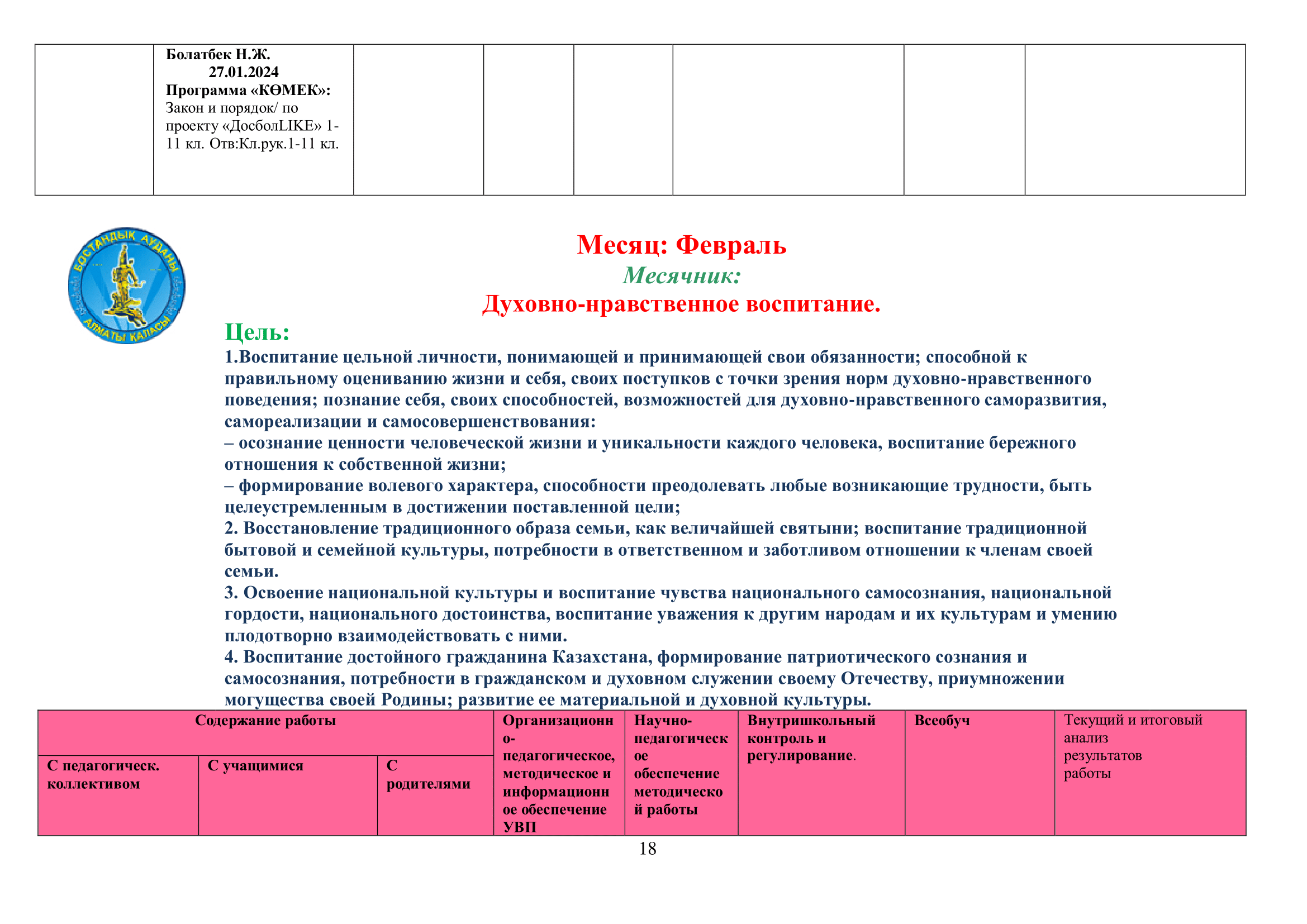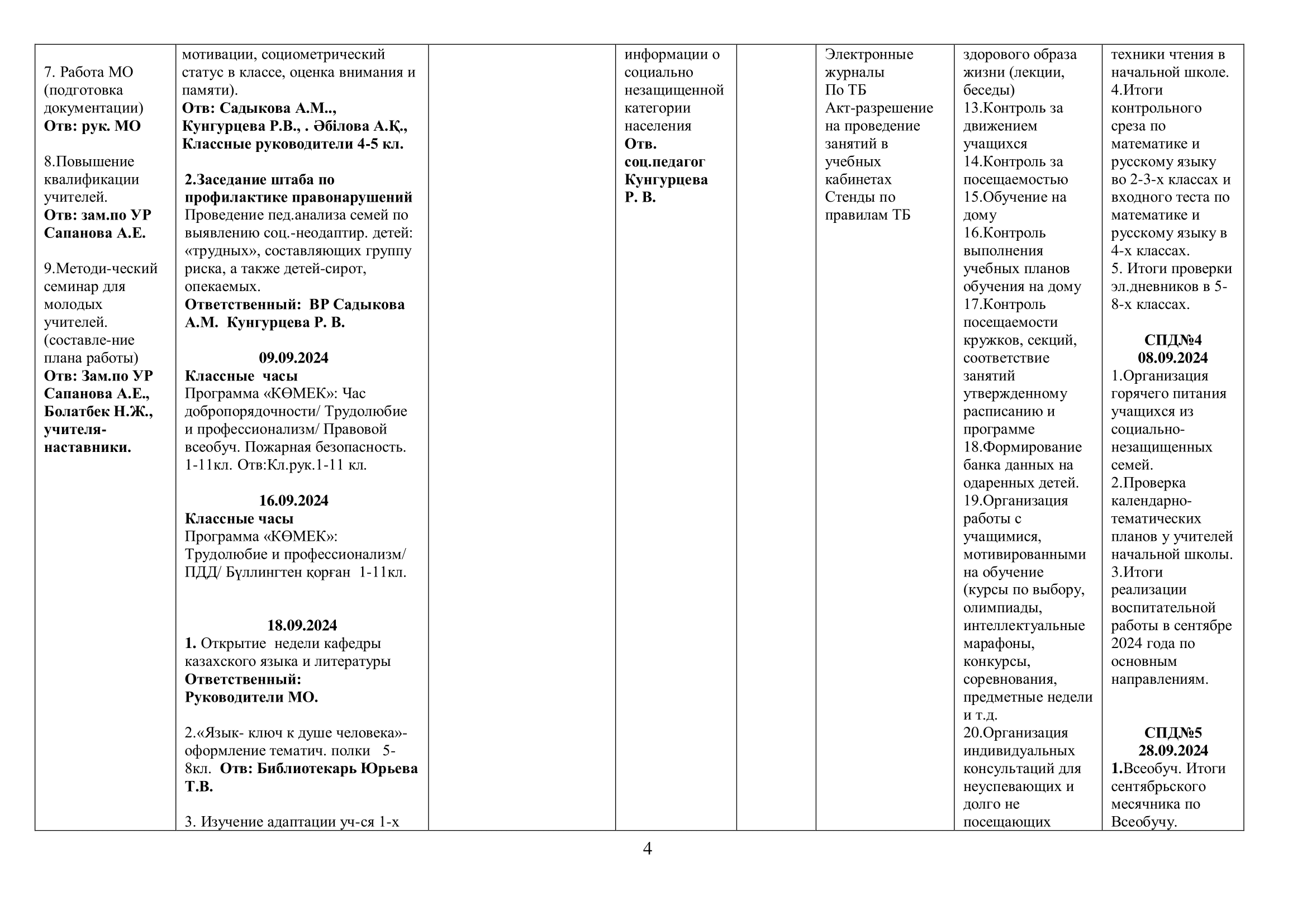 02 қыркүйек 2024 0 1 2 3 4 5 2024-2025 оқу жылына арналған оқу-тәрбие жұмысының жоспары/ План учебно-воспитательной работы на 2024-2025 учебный год