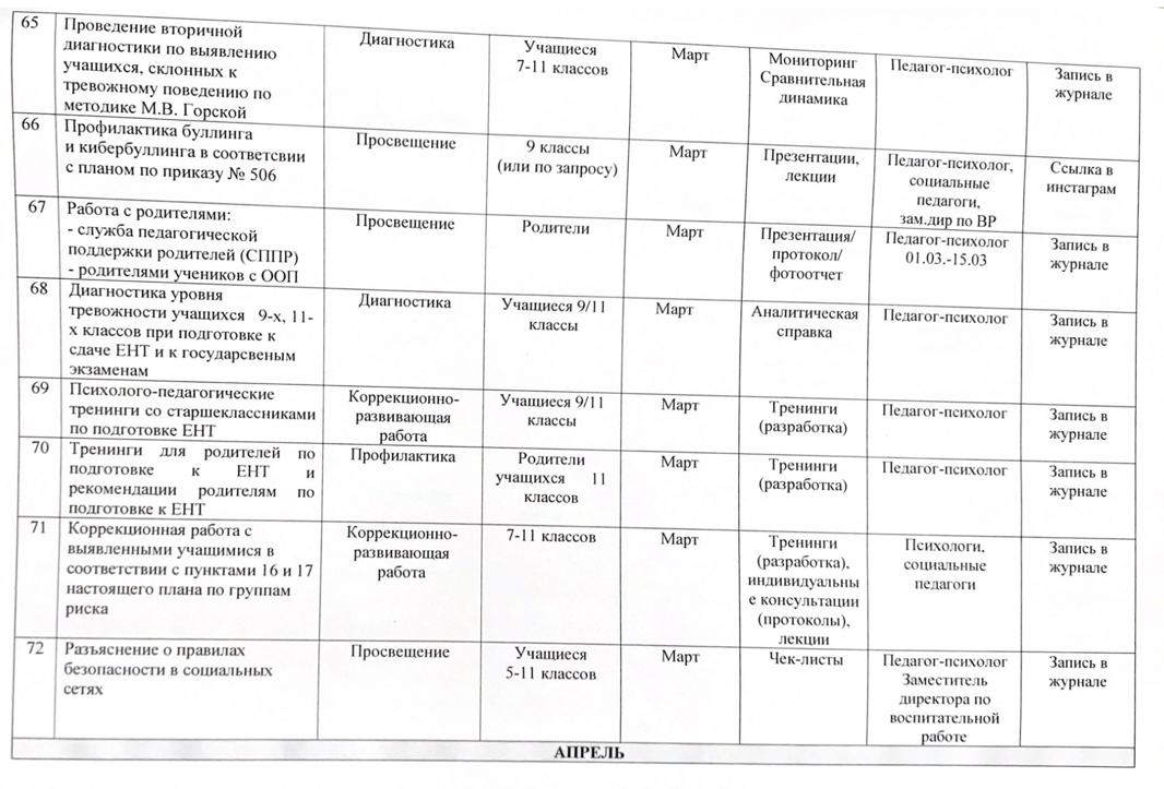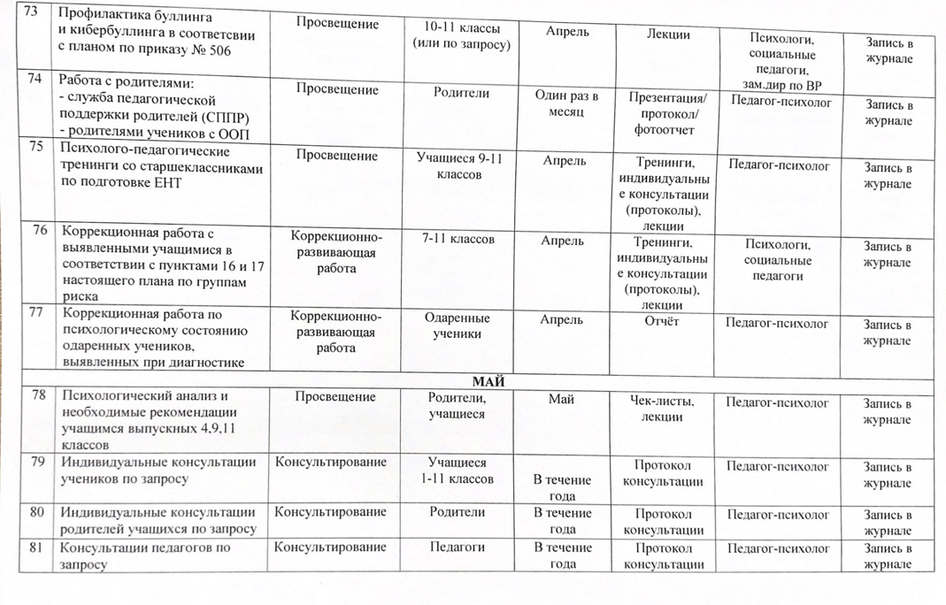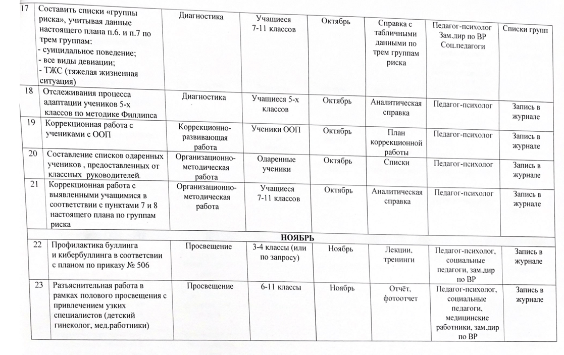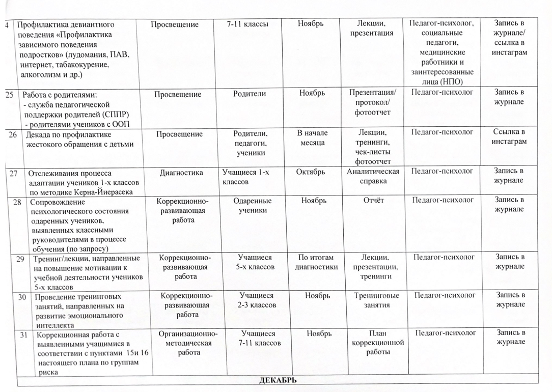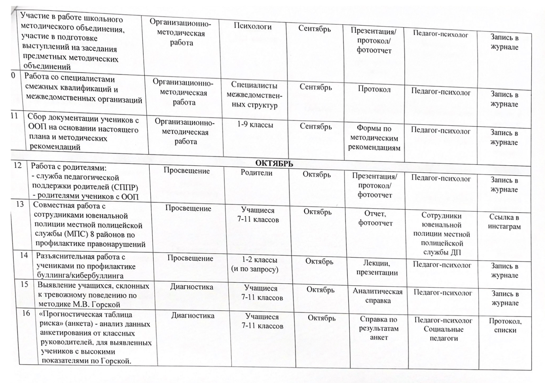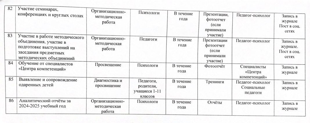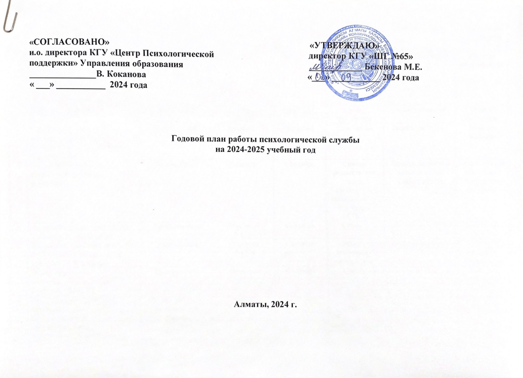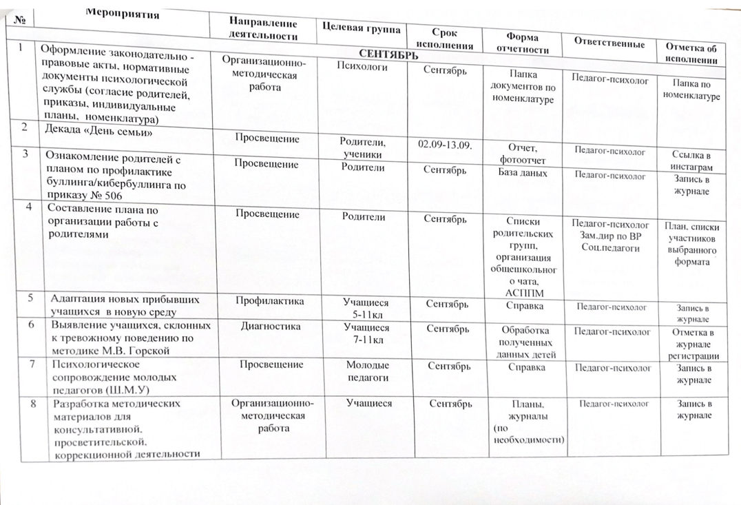 02 қыркүйек 2024 0 1 2 3 4 5 2024-2025 оқу жылына арналған психологиялық қызметтің жұмыс жоспары/ План работы психологической службы на 2024-2025 учебный год