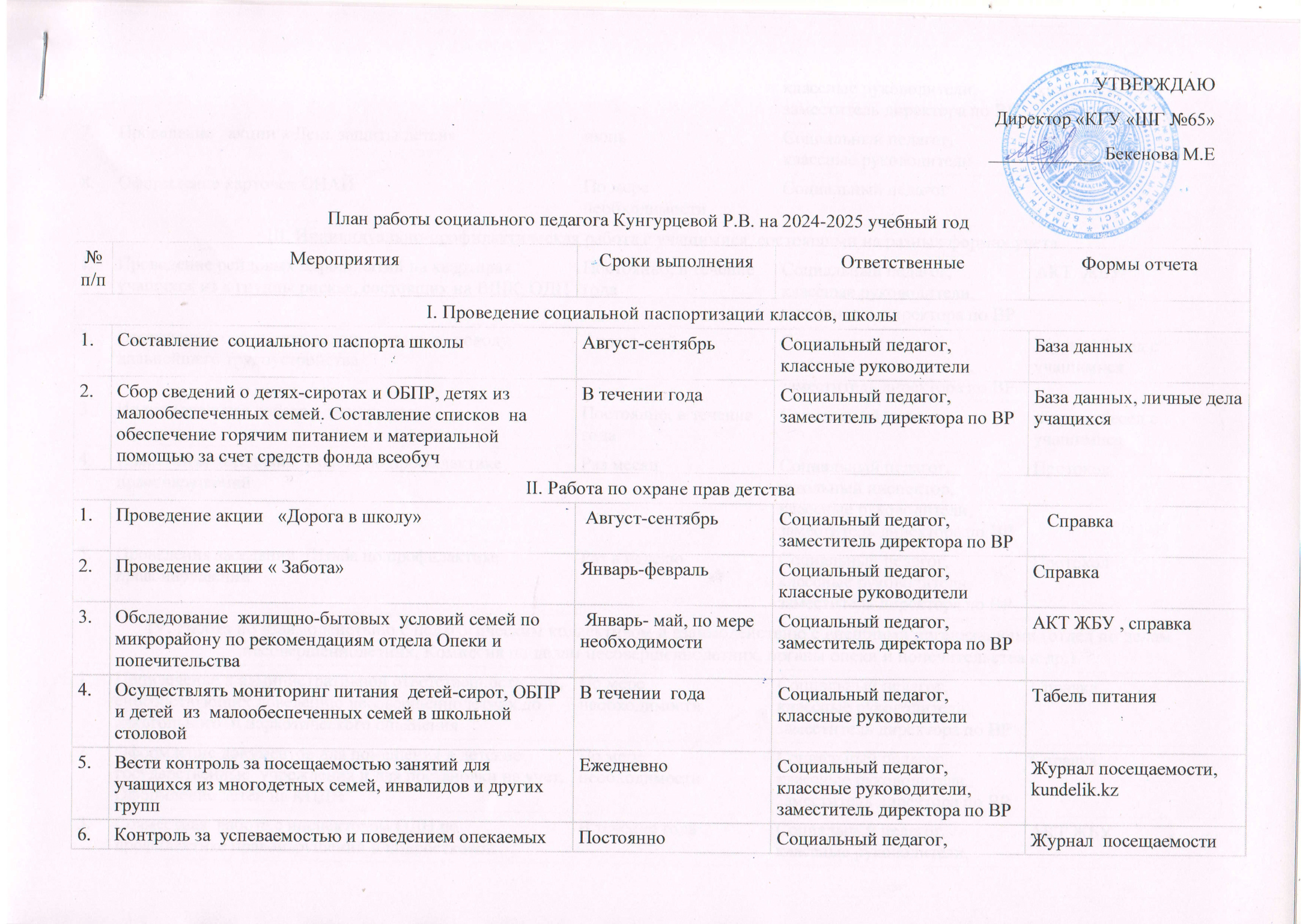 02 қыркүйек 2024 0 1 2 3 4 5 2024-2025 оқу жылына арналған әлеуметтік педагогтың жұмыс жоспары/ План работы социального педагога на 2024-2025 учебный год