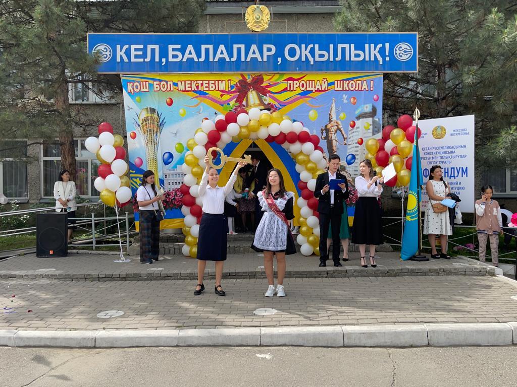 25 мамыр 2022 0 1 2 3 4 5 Білімнің алтын кілтін табыстау 11 сыныптың түлектері атынан мектеп аманатын, білімнің алтын кілтін 11 «Ә» сынып оқушысы Оразбекова Анар 10 «Ә» сынып оқушысы Алихран Жансаяға тапсырды.