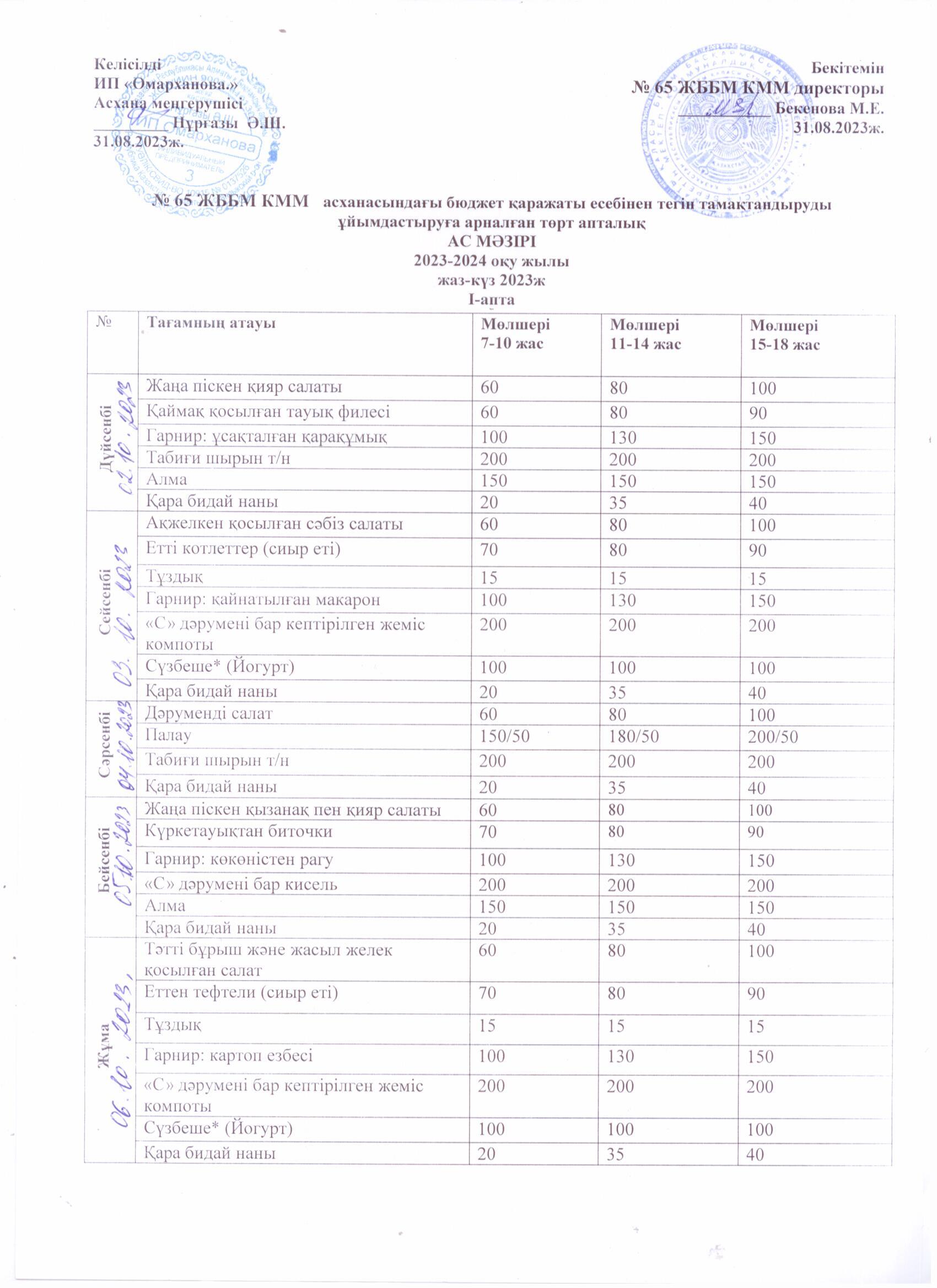 02 қазан 2023 0 1 2 3 4 5 1-4 сыныптар үшін тегін апталық мәзір, 5-11 сыныптар үшін 02.10-06.10.2023 ж./// Бесплатное недельное меню для 1-4 классов , для 5-11 классов