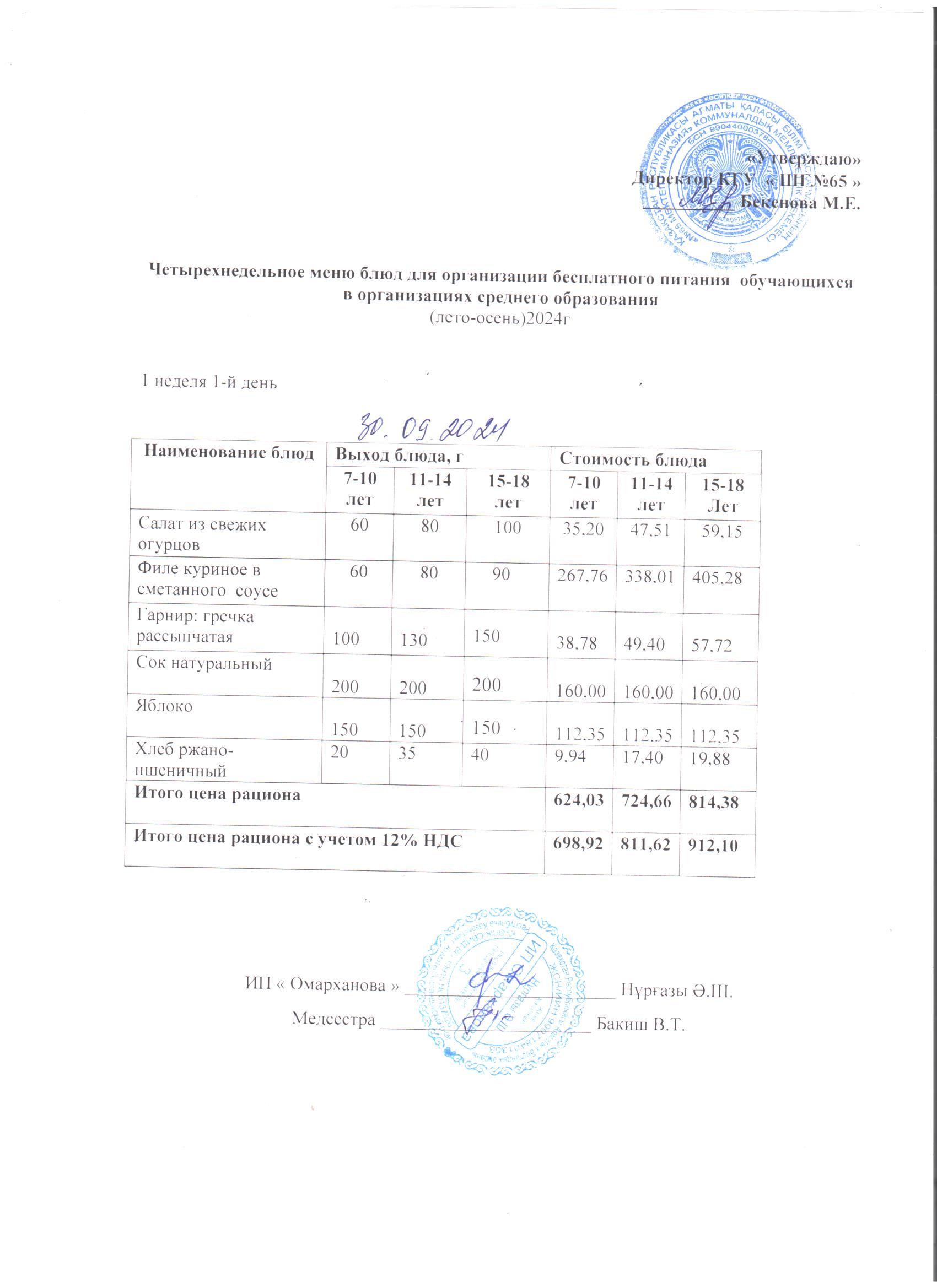30 қыркүйек 2024 0 1 2 3 4 5 1-4 сыныптарға арналған күнделікті тегін мәзір, 5-11 сыныптардан тұратын СУСН үшін.30.09.2024 ж./// Ежедневное бесплатное меню 1-4кл., для СУСН