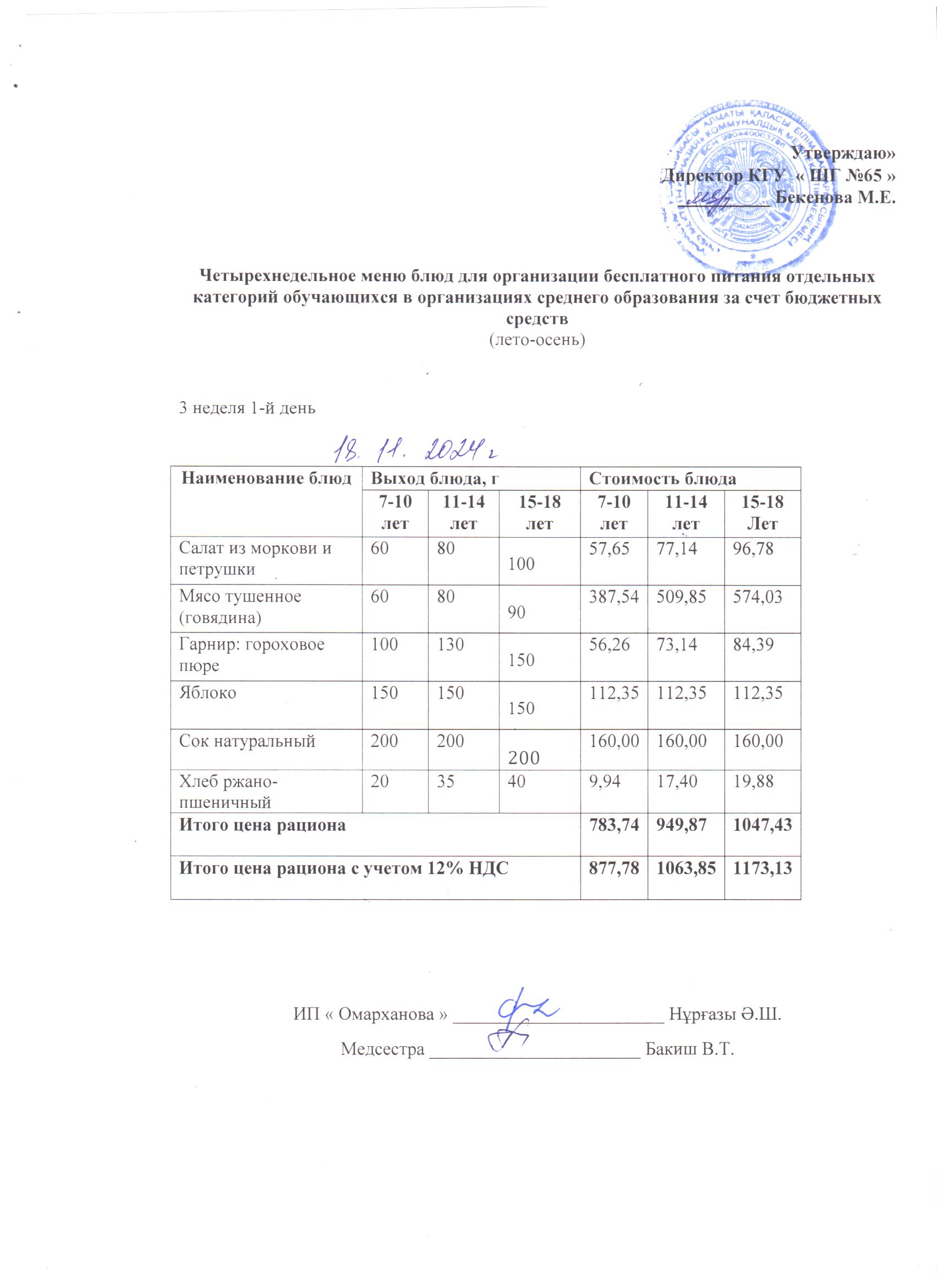 18 қараша 2024 0 1 2 3 4 5 ХӘОТ санатындағы 5-11 сыныптар үшін 1-4 сыныптарға арналған күнделікті тегін мәзір. 18.11.2024 ж./// Ежедневное бесплатное меню для 1-4кл., для 5-11