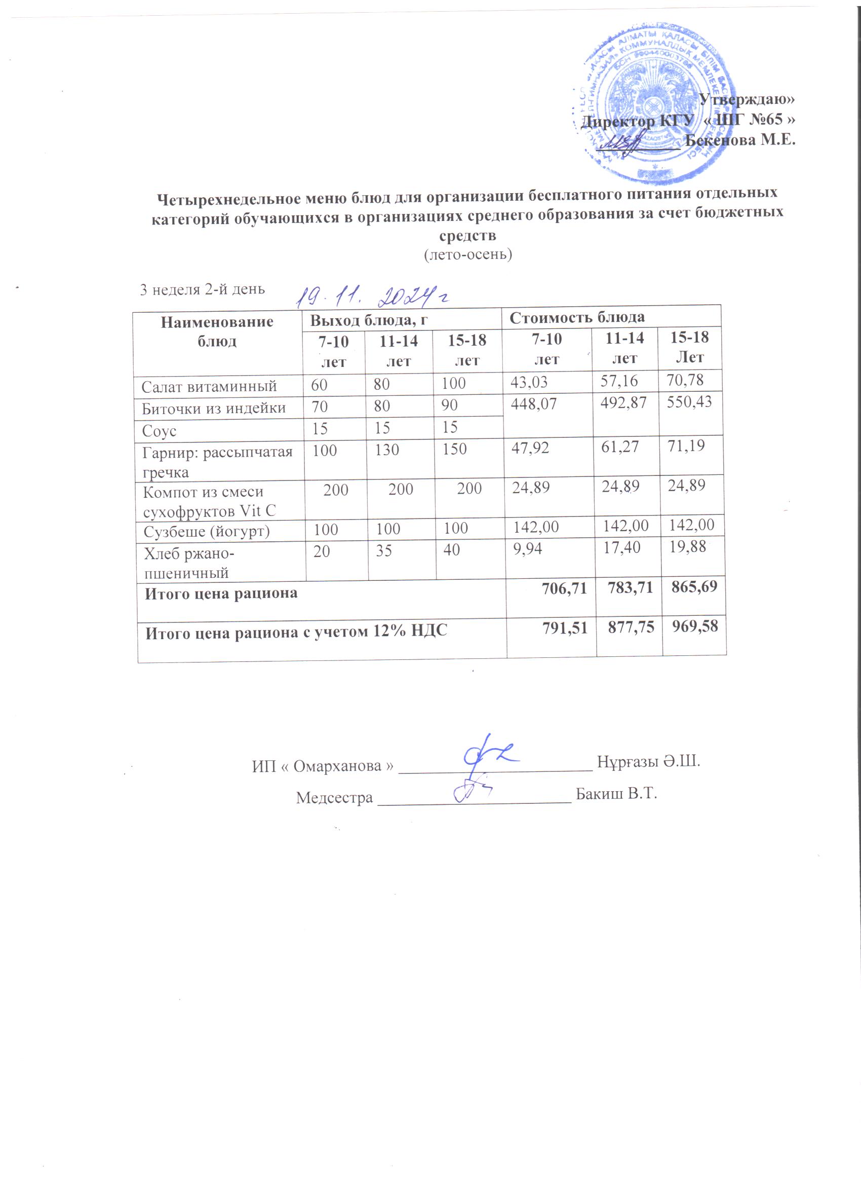 19 қараша 2024 0 1 2 3 4 5 ХӘОТ санатындағы 5-11 сыныптар үшін 1-4 сыныптарға арналған күнделікті тегін мәзір. 19.11.2024 ж./// Ежедневное бесплатное меню для 1-4кл.,для 5-11
