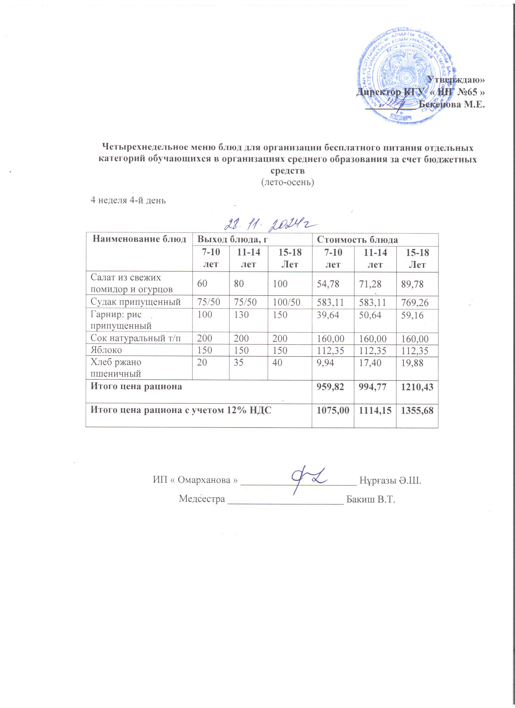 28 қараша 2024 0 1 2 3 4 5 ХӘОТ санатындағы 5-11 сыныптар үшін 1-4 сыныптарға арналған күнделікті тегін мәзір. 28.11.2024 ж.///Ежедневное бесплатное меню для 1-4кл., для 5-11кл