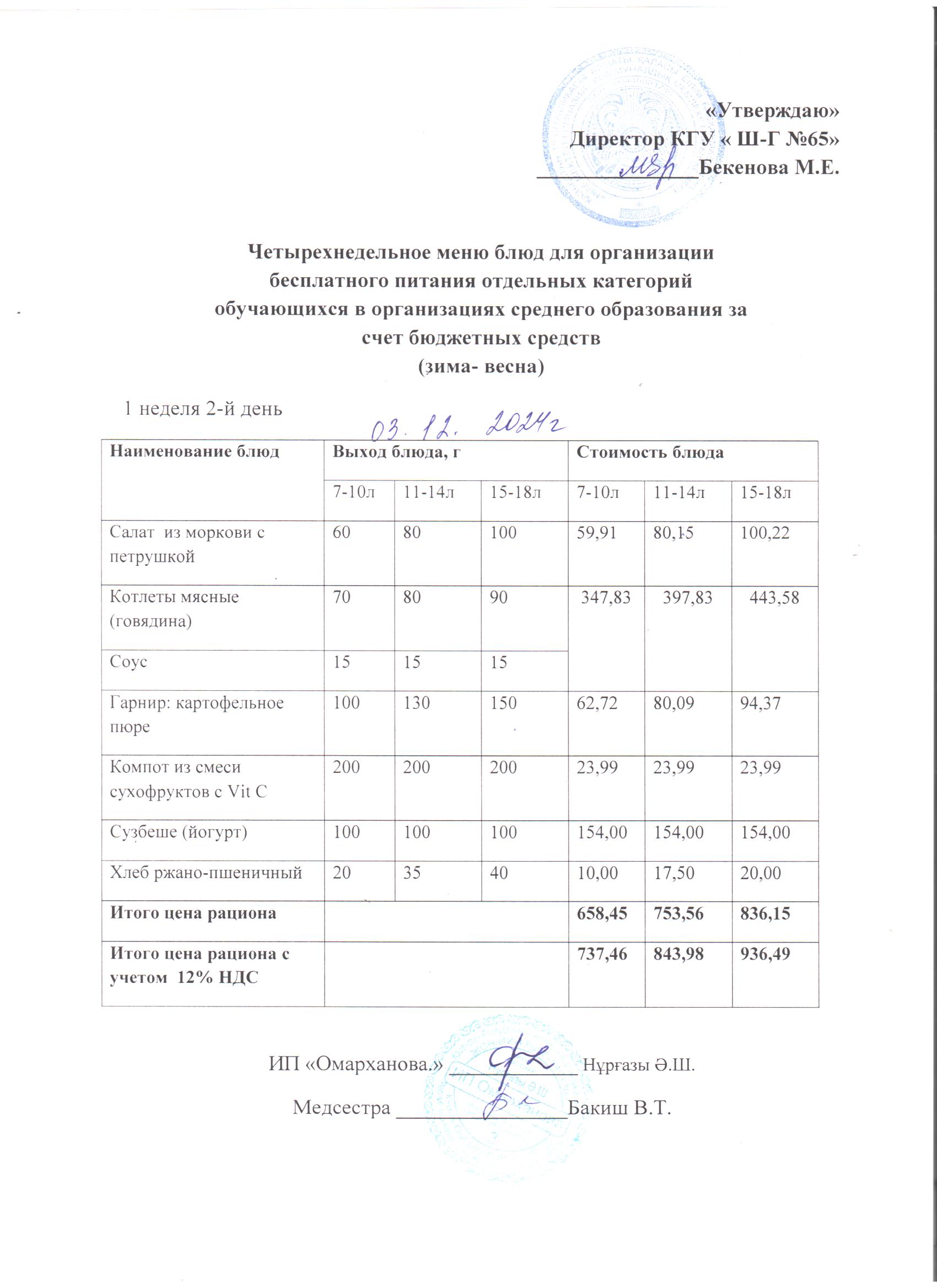 03 желтоқсан 2024 0 1 2 3 4 5 ХӘОТ санатындағы 5-11 сыныптар үшін 1-4 сыныптарға арналған күнделікті тегін мәзір. 03.12.2024 ж./// Ежедневное бесплатное меню для 1-4кл., для 5-11к