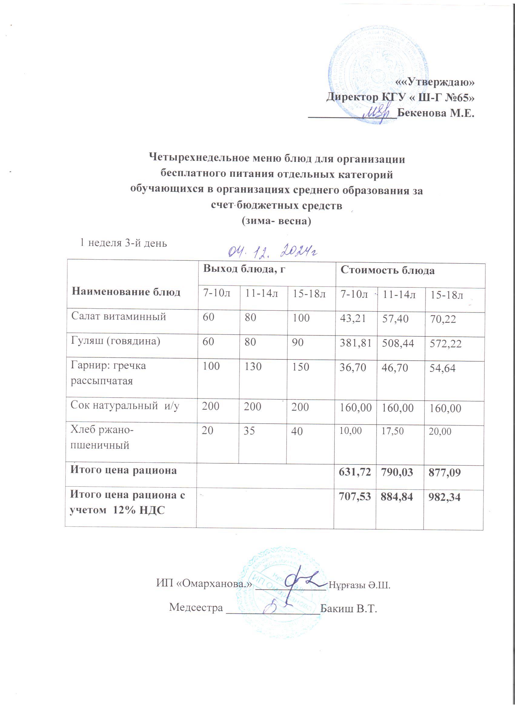 04 желтоқсан 2024 0 1 2 3 4 5 ХӘОТ санатындағы 5-11 сыныптар үшін 1-4 сыныптарға арналған күнделікті тегін мәзір. 04.12.2024 ж./// Ежедневное бесплатное меню для 1-4кл., для 5-11