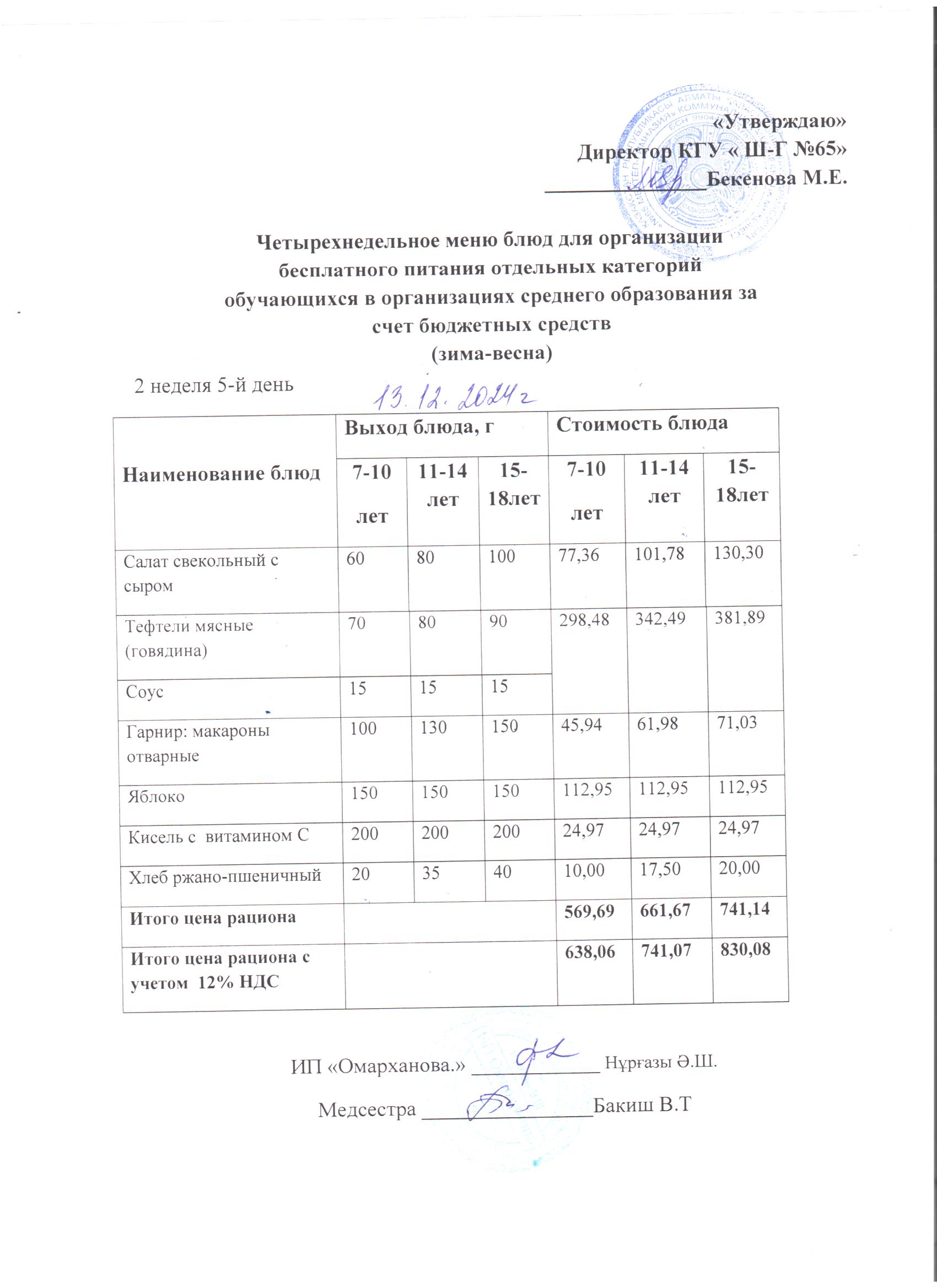 13 желтоқсан 2024 0 1 2 3 4 5 Күнделікті тегін мәзір 1-4 сыныптар үшін, 5-11 сыныптар үшін ХӘОТ санатынан. 13.12.2024 ж.///Ежедневное бесплатное меню для 1-4кл., для 5-11кл СУСН