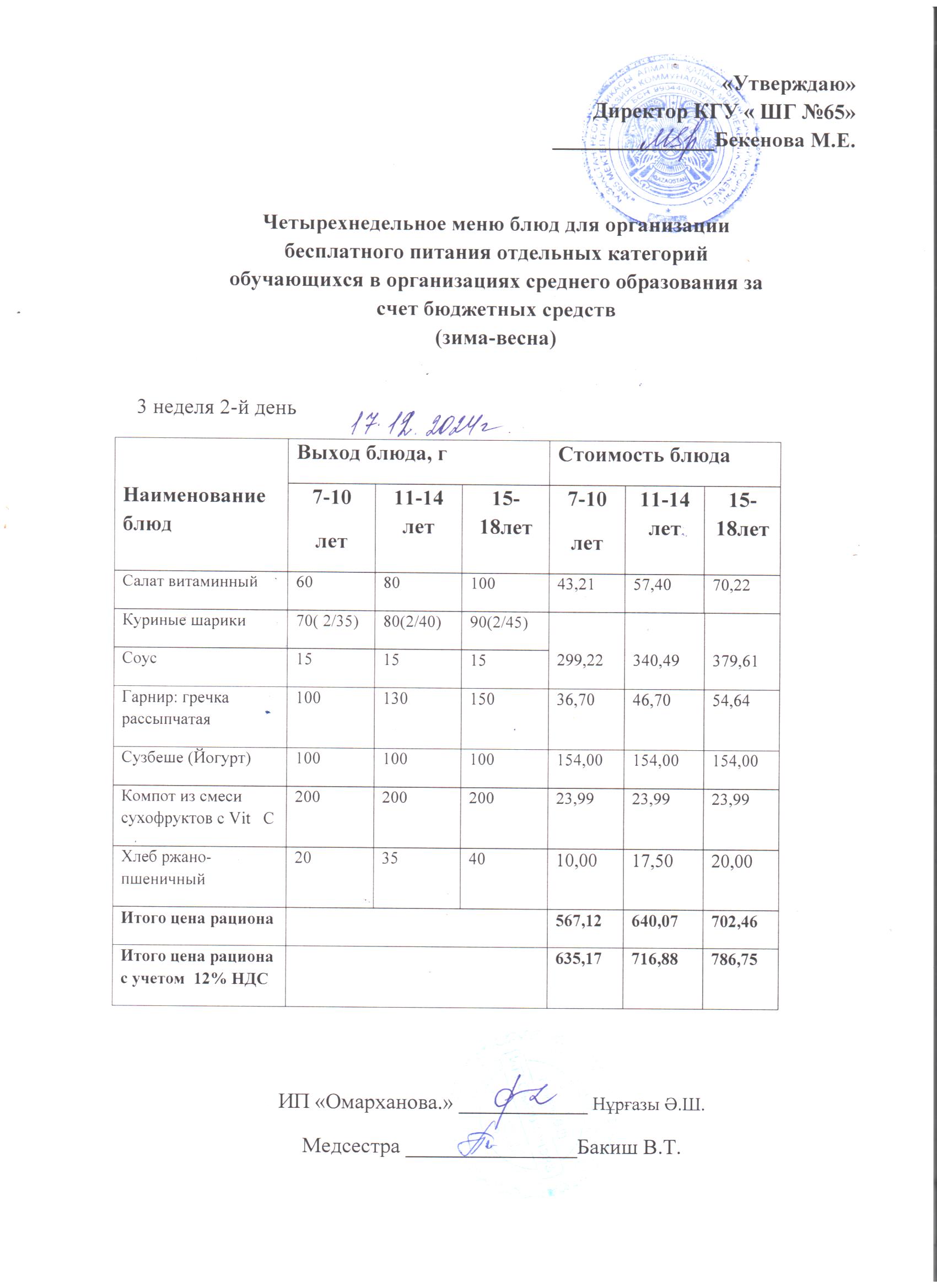 17 желтоқсан 2024 0 1 2 3 4 5 Күнделікті тегін мәзір 1-4 сыныптар үшін, 5-11 сыныптар үшін ХӘОТ санатынан. 17.12.2024 ж./// Ежедневное бесплатное меню для 1-4кл., для 5-11кл,