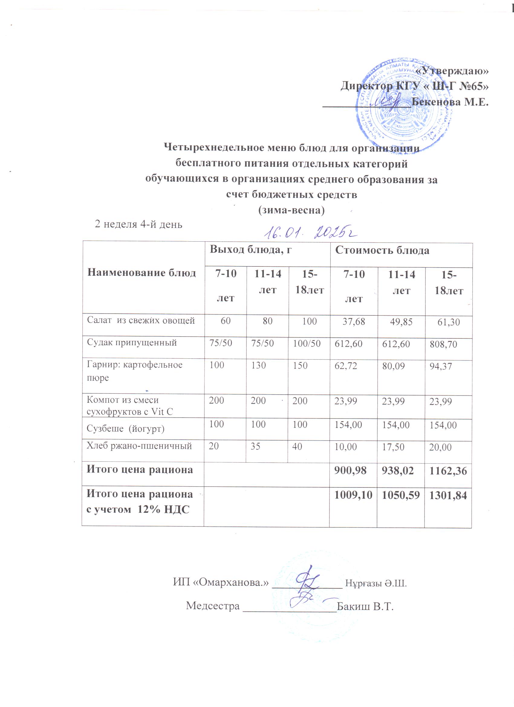 16 қаңтар 2025 0 1 2 3 4 5 1-4 сыныптарға арналған тегін күнделікті мәзір, ХӘОТ санатындағы 5-11 сыныптар үшін. 16.01.2025 ж./// Бесплатное ежедневное меню для 1-4кл.,для 5-11