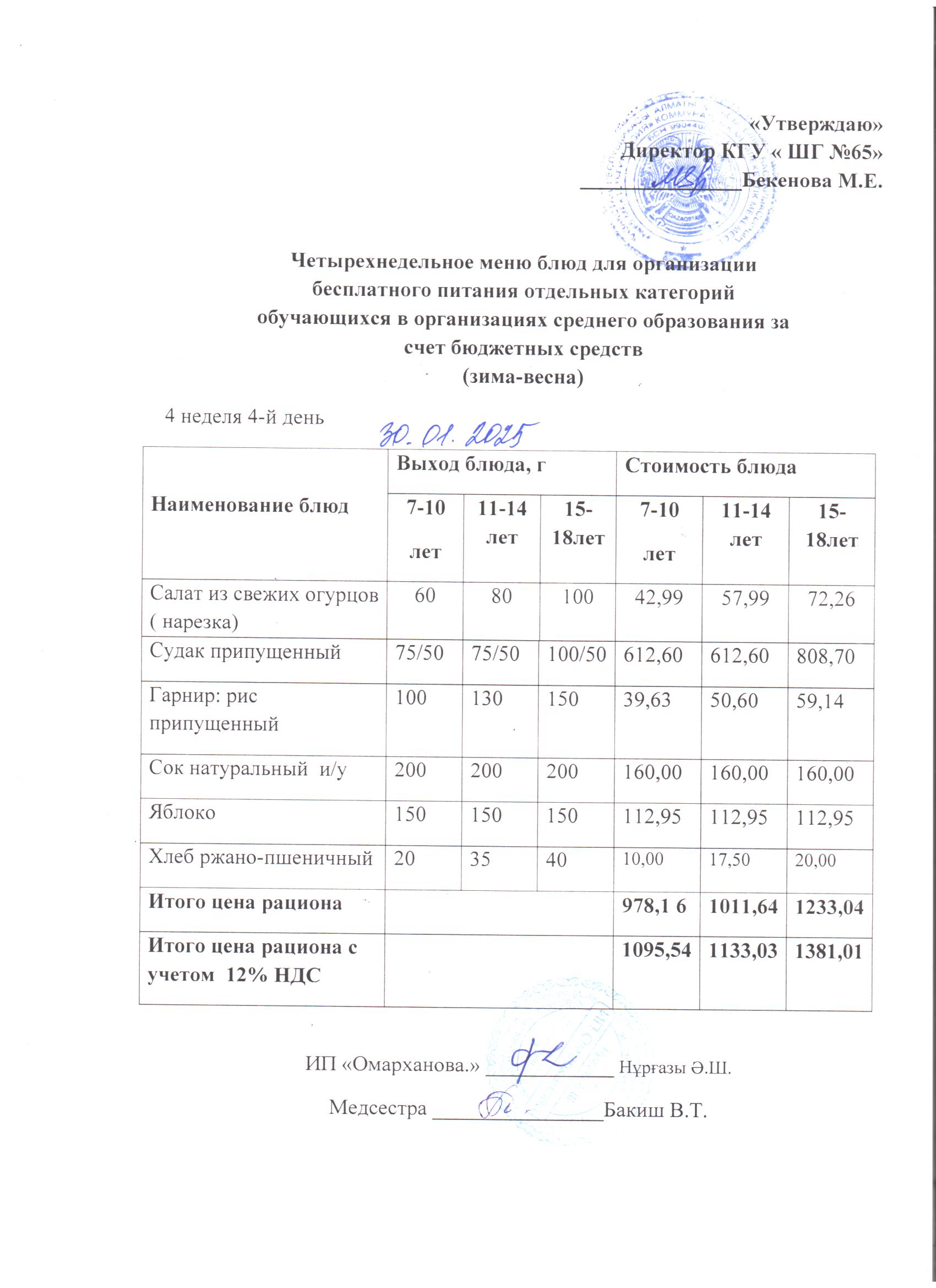 30 қаңтар 2025 0 1 2 3 4 5 1-4 сыныптарға арналған тегін күнделікті мәзір, ХӘОТ санатындағы 5-11 сыныптар үшін. 30.01.2025 ж.///Бесплатное меню для 1-4кл., для 5-11кл. из СУСН