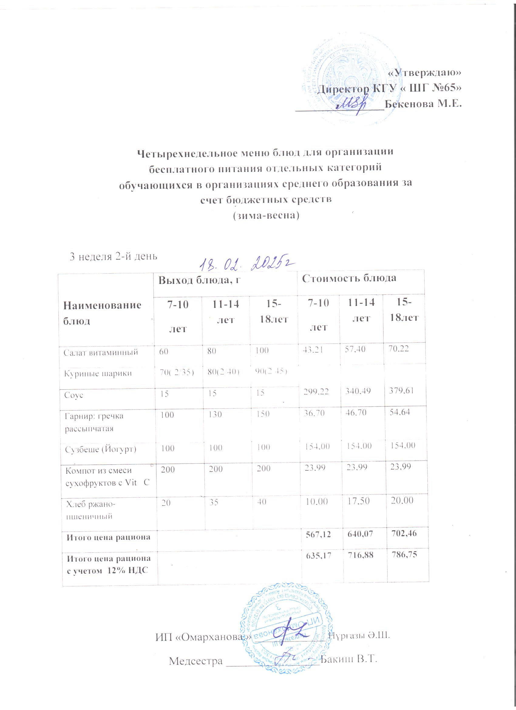 18 ақпан 2025 0 1 2 3 4 5 ХӘОТ санатындағы 5-11 сыныптарға арналған 1-4 сыныптарға арналған күнделікті тегін мәзір.18.02.2025 ж./// Ежедневное бесплатное меню для 1-4 кл.,