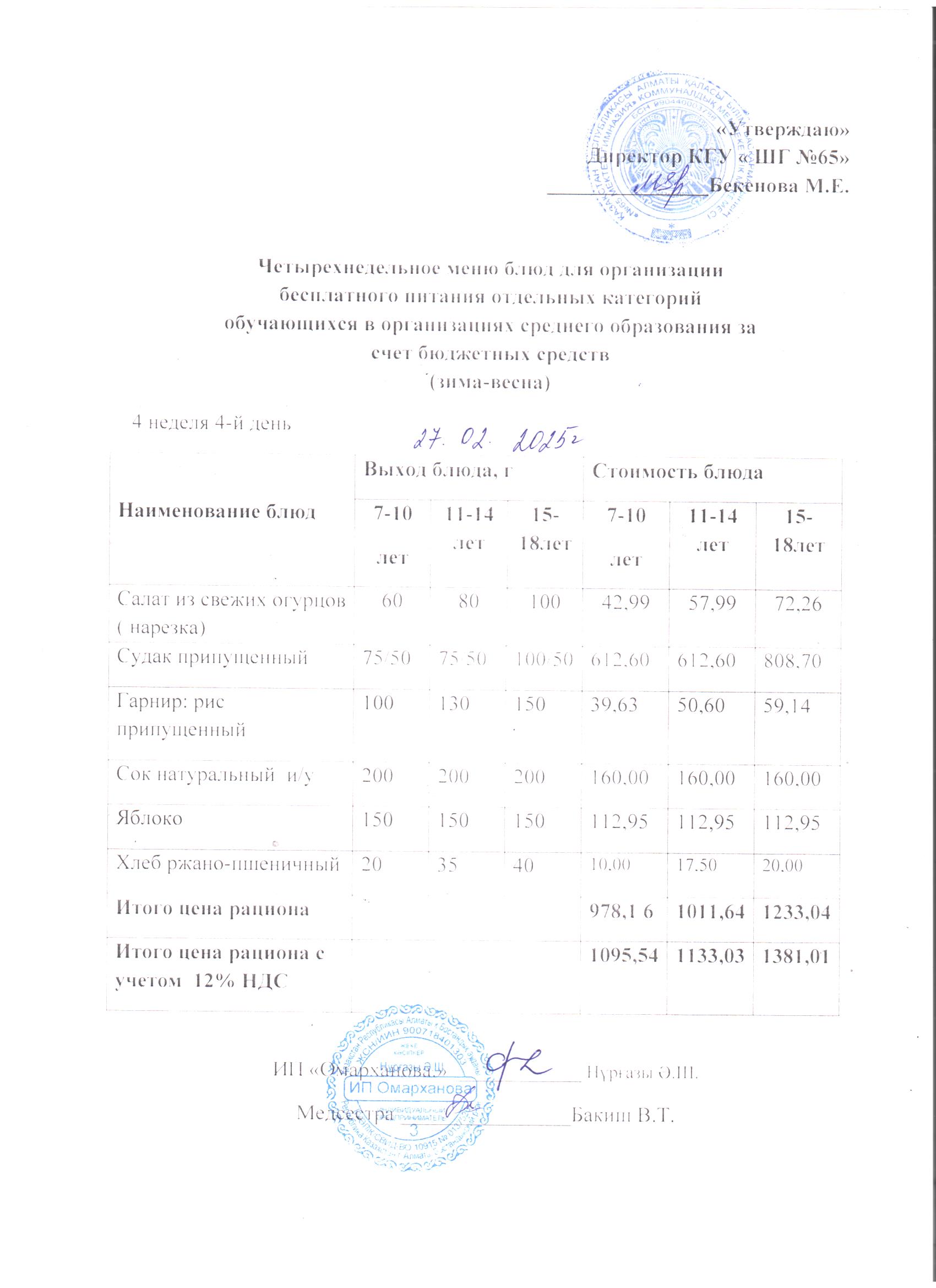 27 ақпан 2025 0 1 2 3 4 5 ХӘОТ санатындағы 5-11 сыныптарға арналған 1-4 сыныптарға арналған күнделікті тегін мәзір. 27.02.2025 ж./// Ежедневное бесплатное меню для 1-4кл