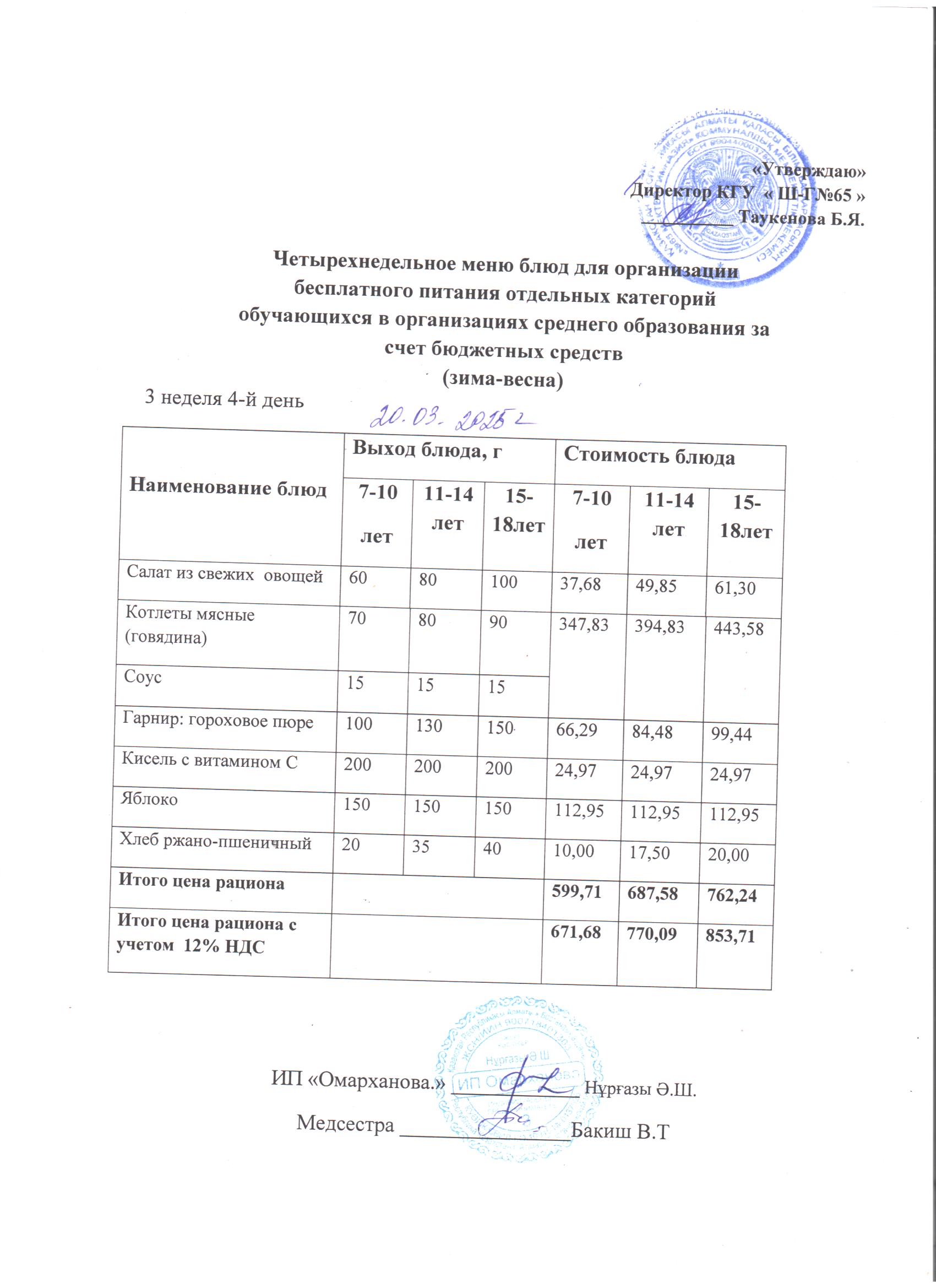 20 наурыз 2025 0 1 2 3 4 5 ХӘОТ санатындағы 5-11 сыныптарға арналған 1-4 сыныптарға арналған күнделікті тегін мәзір. 20.03.2025 ж./// Ежедневное бесплатное меню для 1-4 кл., для 5-11кл. из категории СУСН. 20.03.2025г.