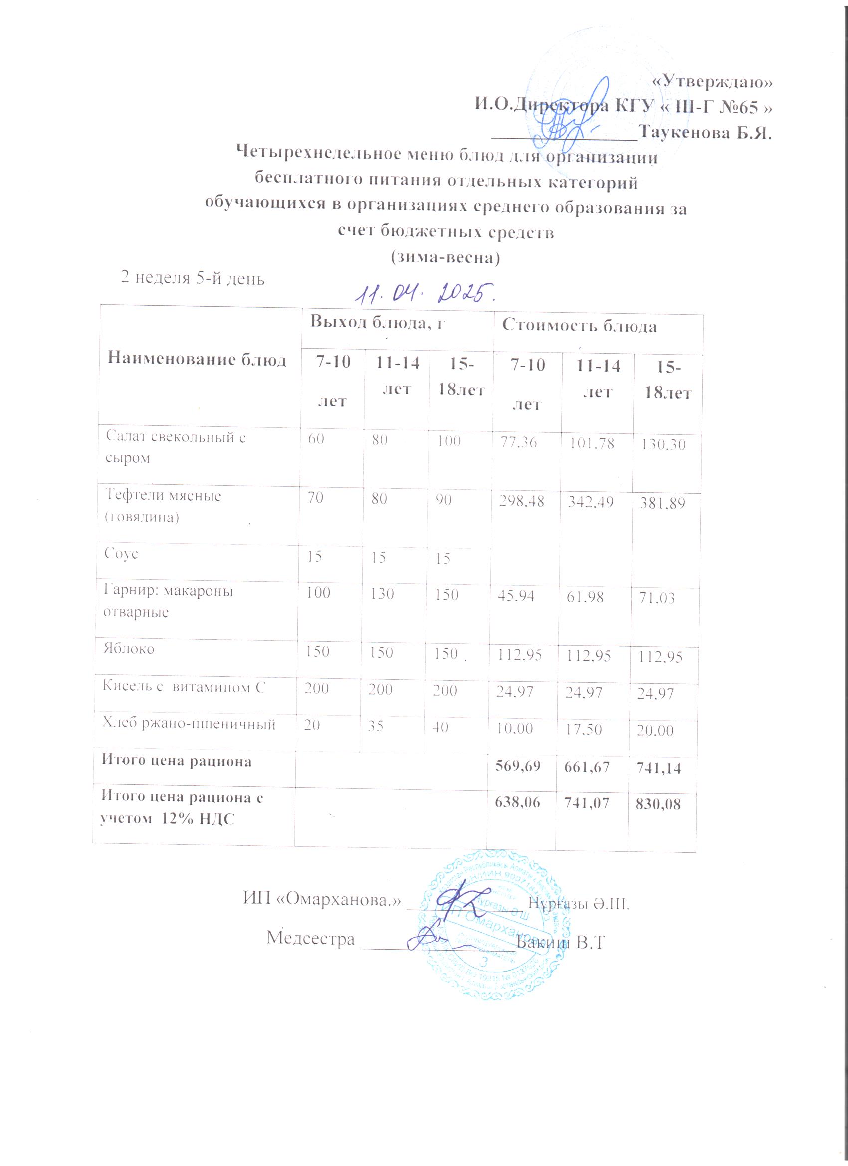 11 сәуір 2025 0 1 2 3 4 5 ХӘОТ санатындағы 5-11 сыныптар үшін 1-4 сыныптарға арналған күнделікті тегін мәзір. 11.04.2025 ж./// Ежедневное бесплатное меню для 1-4кл., для 5-11кл. из категории СУСН.