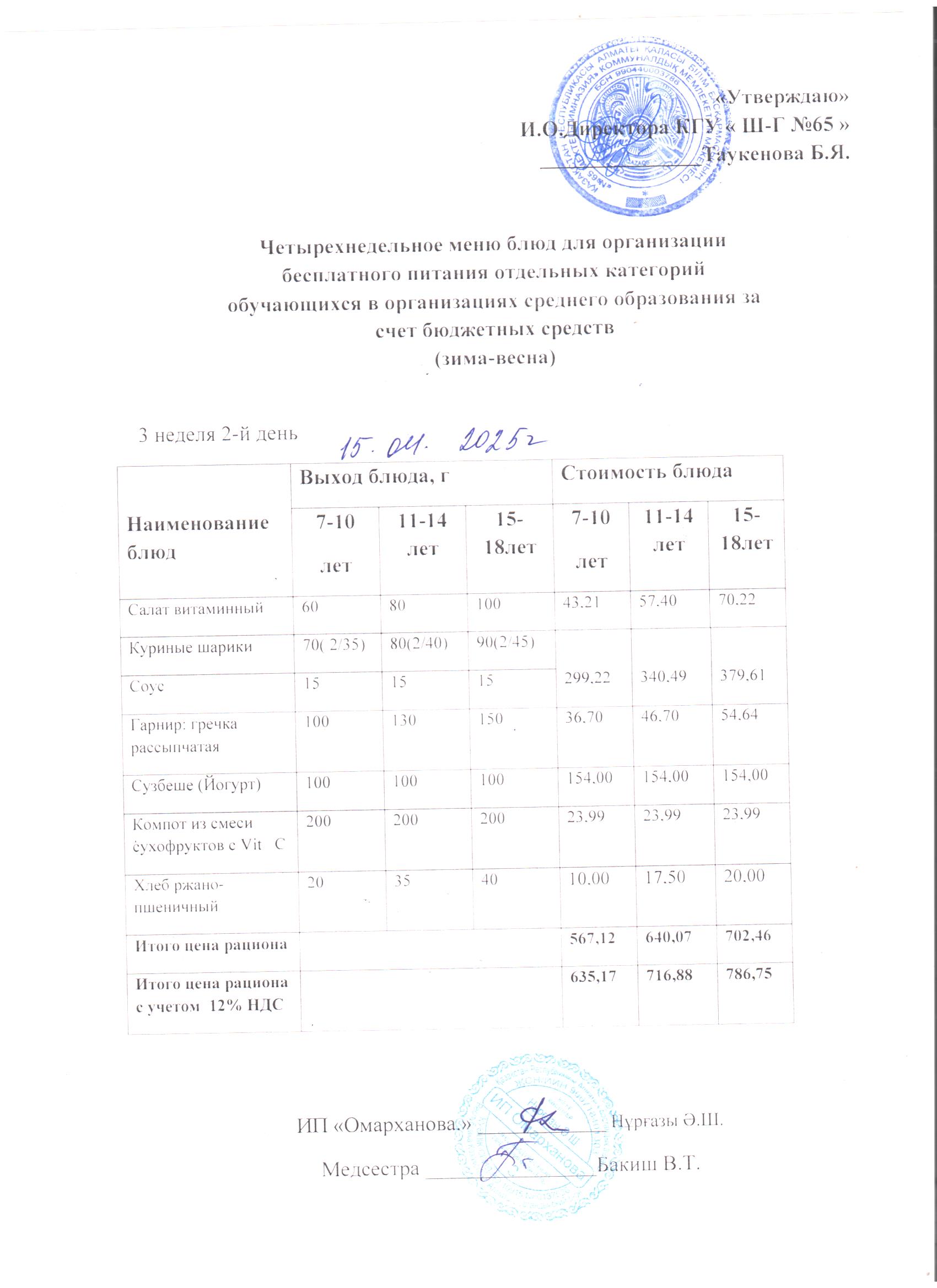 15 сәуір 2025 0 1 2 3 4 5 ХӘОТ санатындағы 5-11 сыныптар үшін 1-4 сыныптарға арналған күнделікті тегін мәзір. 15.04.2025 ж./// Ежедневное бесплатное меню для 1-4 кл., для 5-11 кл. из категории СУСН.