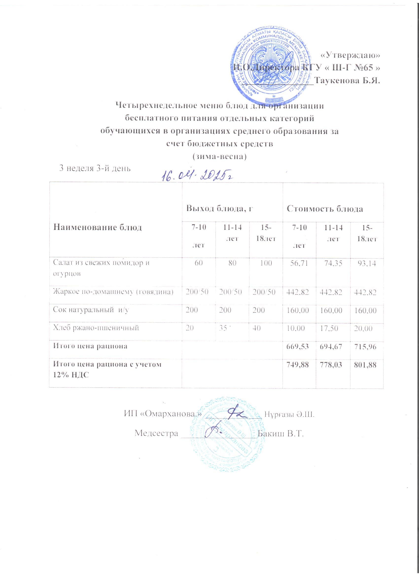 16 сәуір 2025 0 1 2 3 4 5 1-4 сыныптардың күнделікті тегін мәзірі, ХӘОТ санатындағы 5-11 сыныптар үшін. 16.04.2025 ж./// Ежедневное бесплатное меню для 1-4кл., для 5-11кл. из категории СУСН.