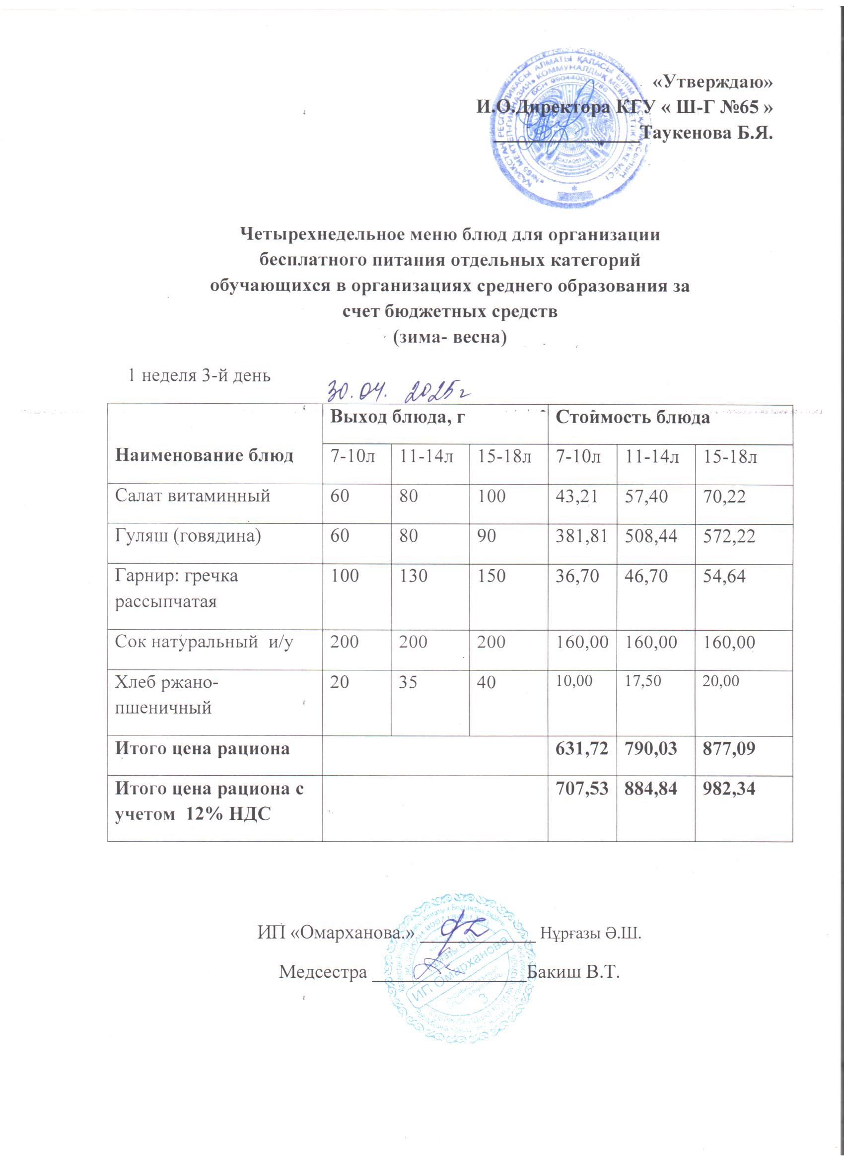 30 сәуір 2025 0 1 2 3 4 5 ХӘОТ санатындағы 5-11 сыныптар үшін 1-4 сыныптарға арналған күнделікті тегін мәзір. 30.04.2025 ж./// Ежедневное бесплатное меню для 1-4кл., для 5-11 кл. из категории СУСН.