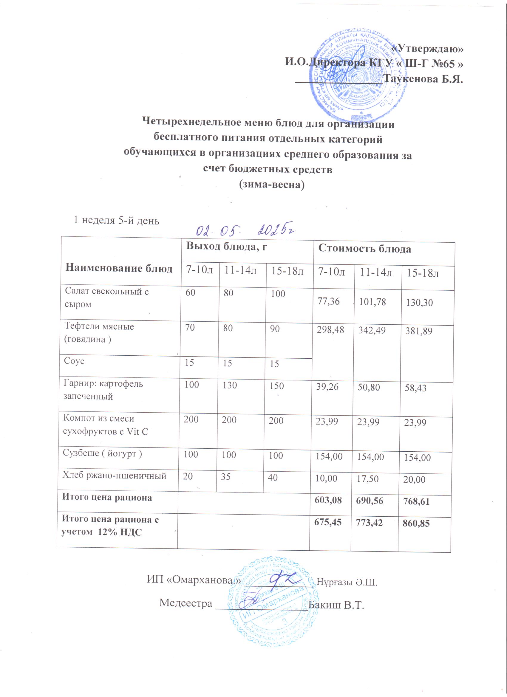 02 мамыр 2025 0 1 2 3 4 5 ХӘОТ санатындағы 5-11 сыныптар үшін 1-4 сыныптарға арналған күнделікті тегін мәзір. 02.05.2025 ж./// Ежедневное бесплатное меню 1-4 кл., для 5-11 кл. из категории СУСН.