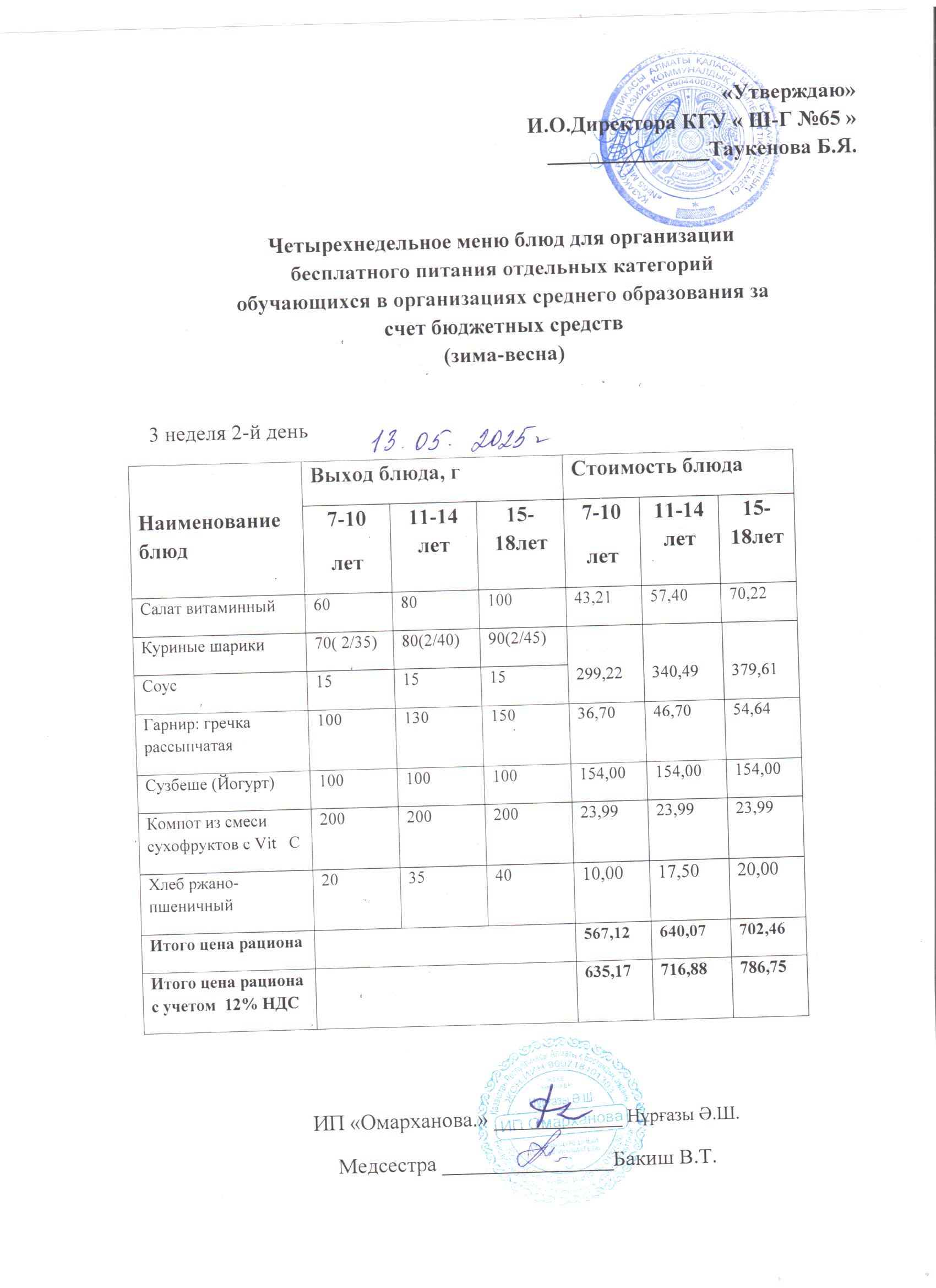 13 мамыр 2025 0 1 2 3 4 5 ХӘОТ санатындағы 5-11 сыныптар үшін 1-4 сыныптарға арналған күнделікті тегін мәзір. 13.05.2025 ж./// Ежедневное бесплатное меню для 1-4 классов, для 5-11 классов из категории СУСН. 13.05.2025г.