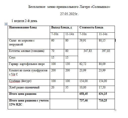 27 мамыр 2025 0 1 2 3 4 5 27.05.2025 Ж. арналған "Күншуақ" мектеп жанындағы лагерьдің тегін мәзірі./// Бесплатное меню пришкольного лагеря Солнышко. 27.05.2025г.