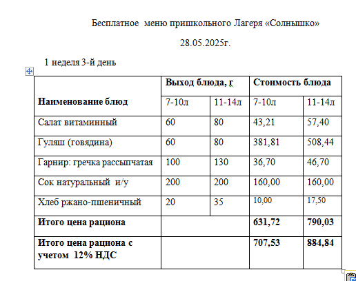 28 мамыр 2025 0 1 2 3 4 5 28.05.2025 Ж. арналған "Күншуақ" мектеп жанындағы лагерьдің тегін мәзірі./// Бесплатное меню для пришкольного лагеря Солнышко на 28.05.2025г.
