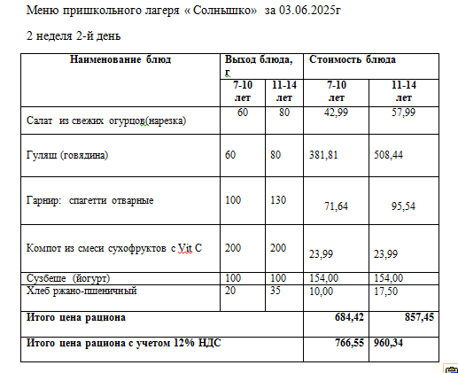 03 маусым 2025 0 1 2 3 4 5 03.06.2025 ж. "Солнышко" мектеп жанындағы лагерінің тегін мәзірі./// Бесплатное меню пришкольного лагеря " Солнышко" за 03.06.2025г.