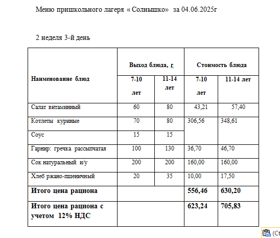 04 маусым 2025 0 1 2 3 4 5 04.06.2025 ж. "Солнышко" мектеп жанындағы лагерінің тегін мәзірі.//// Бесплатное меню пришкольного лагеря за 04.06.2025г.