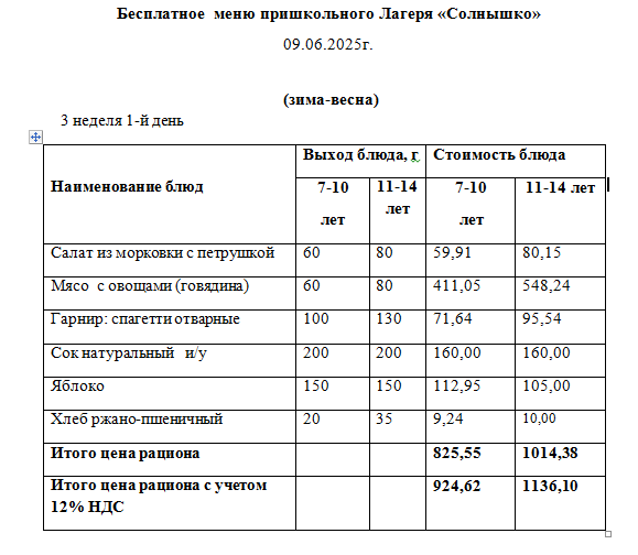 09 маусым 2025 0 1 2 3 4 5 09.06.2025 Ж. арналған "күн" мектеп жанындағы лагерінің тегін мәзірі.///Бесплатное меню пришкольного лагеря Солнышко на 09.06.2025г.