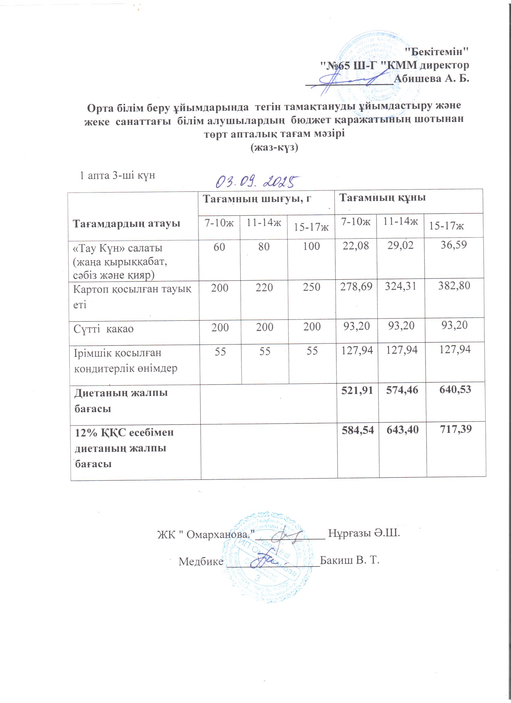 03 қыркүйек 2025 0 1 2 3 4 5 1-4 сынып оқушыларына арналған тегін мәзір, 03.09.2025 ж. ХӘОТ санатынан 5-11 сынып оқушыларына арналған./// Бесплатное меню для учащихся 1-4 классов, для 5-11 классов из категории СУСН за 03.09.2025г.