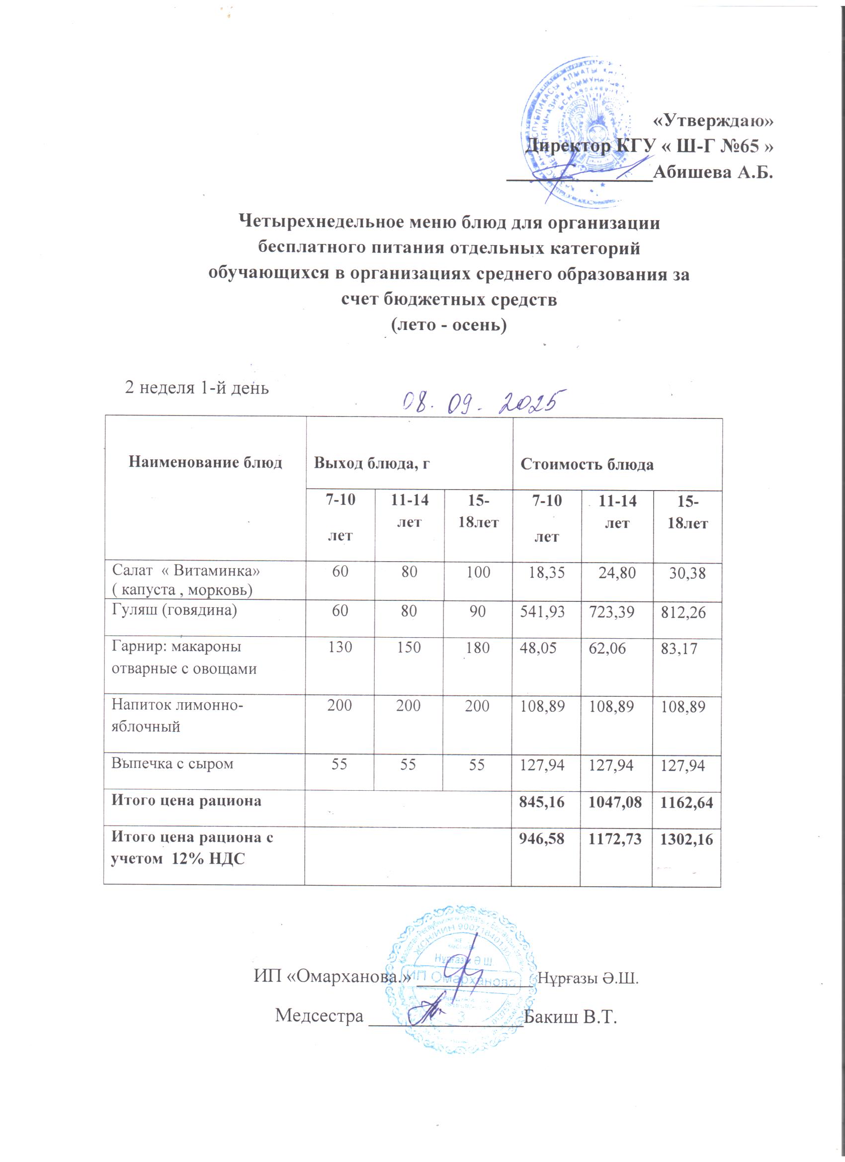 08 қыркүйек 2025 0 1 2 3 4 5 1-4 сыныптар үшін тегін мәзір, 08.09.2025 ж. ХӘОТ санатынан 5-11 сыныптар үшін./// Бесплатное меню для 1-4 классов, для 5-11 классов из категории СУСН на 08.09.2025г.