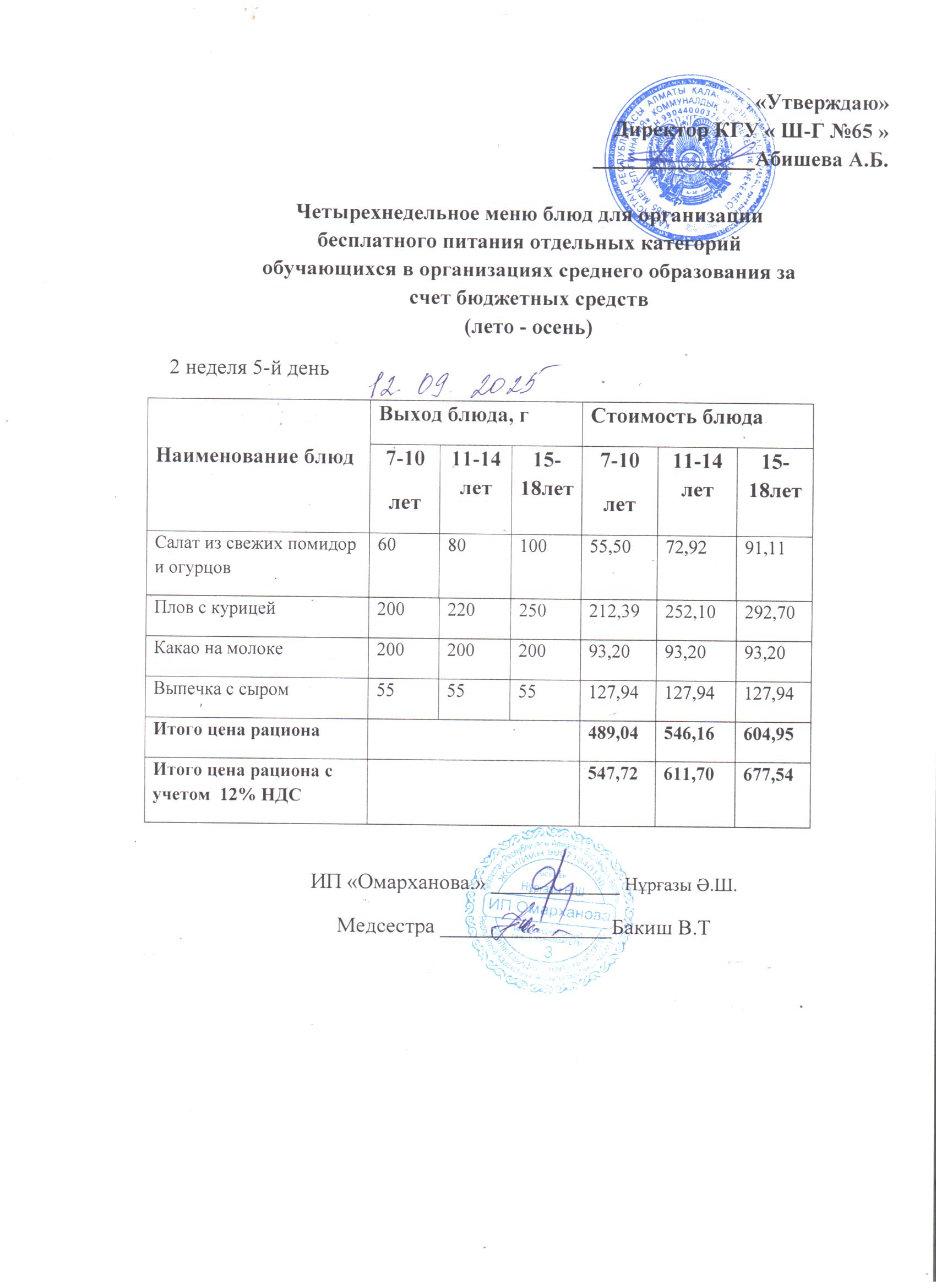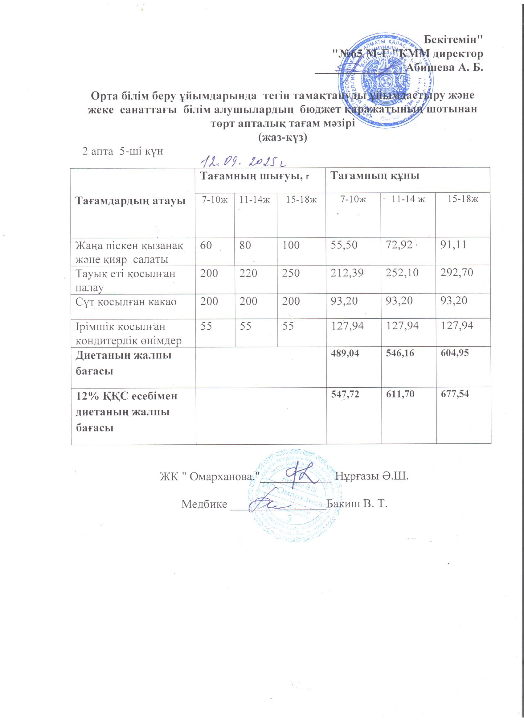 12 қыркүйек 2025 0 1 2 3 4 5 ХӘОТ санатындағы 5-11 сыныптар үшін 1-4 сыныптарға арналған тегін мәзір. 12.09.2025 ж./// Бесплатное меню для 1-4 классов, для 5-11 классов из категории СУСН на 12.09.2025г
