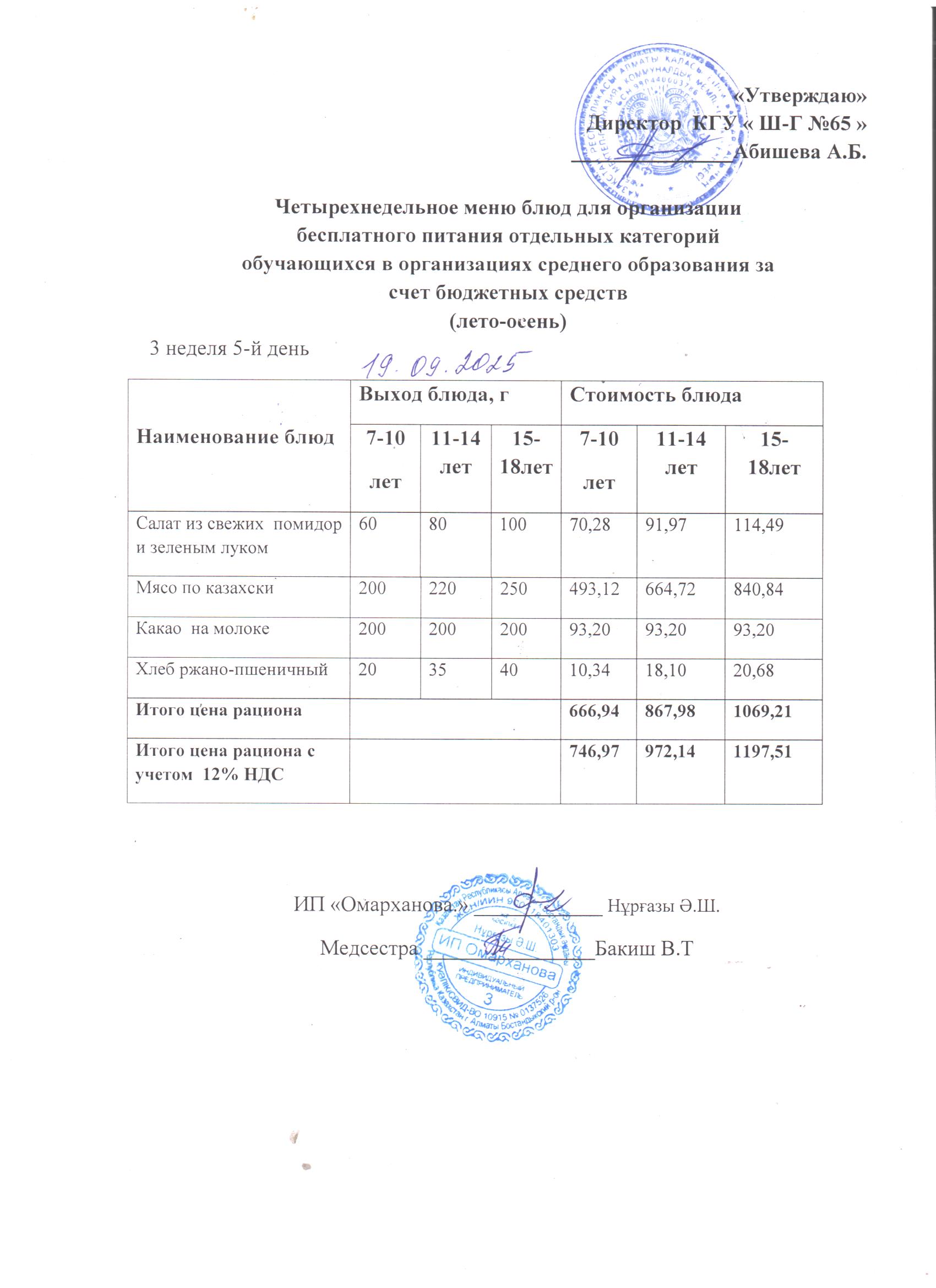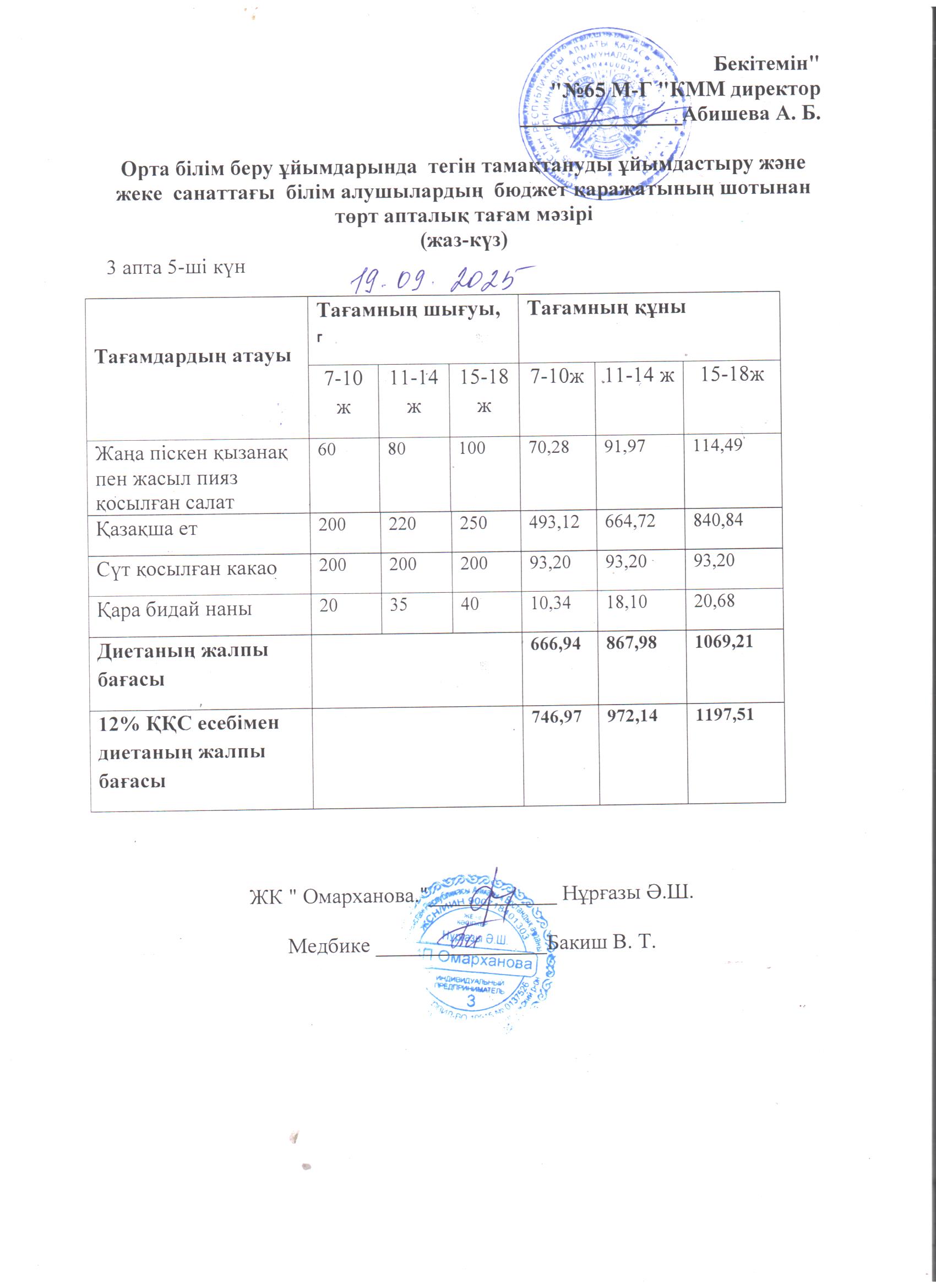 19 қыркүйек 2025 0 1 2 3 4 5 1-4 сыныптарға арналған тегін мәзір, 19.09.2025 ж. ХӘОТ санатындағы 5-11 сыныптар үшін./// Бесплатное меню для 1-4 классов, для 5-11 классов из категории СУСН на 19.09.2025г.