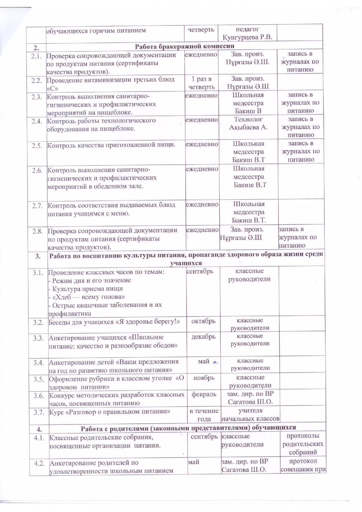 » План работы бракеражной комиссии